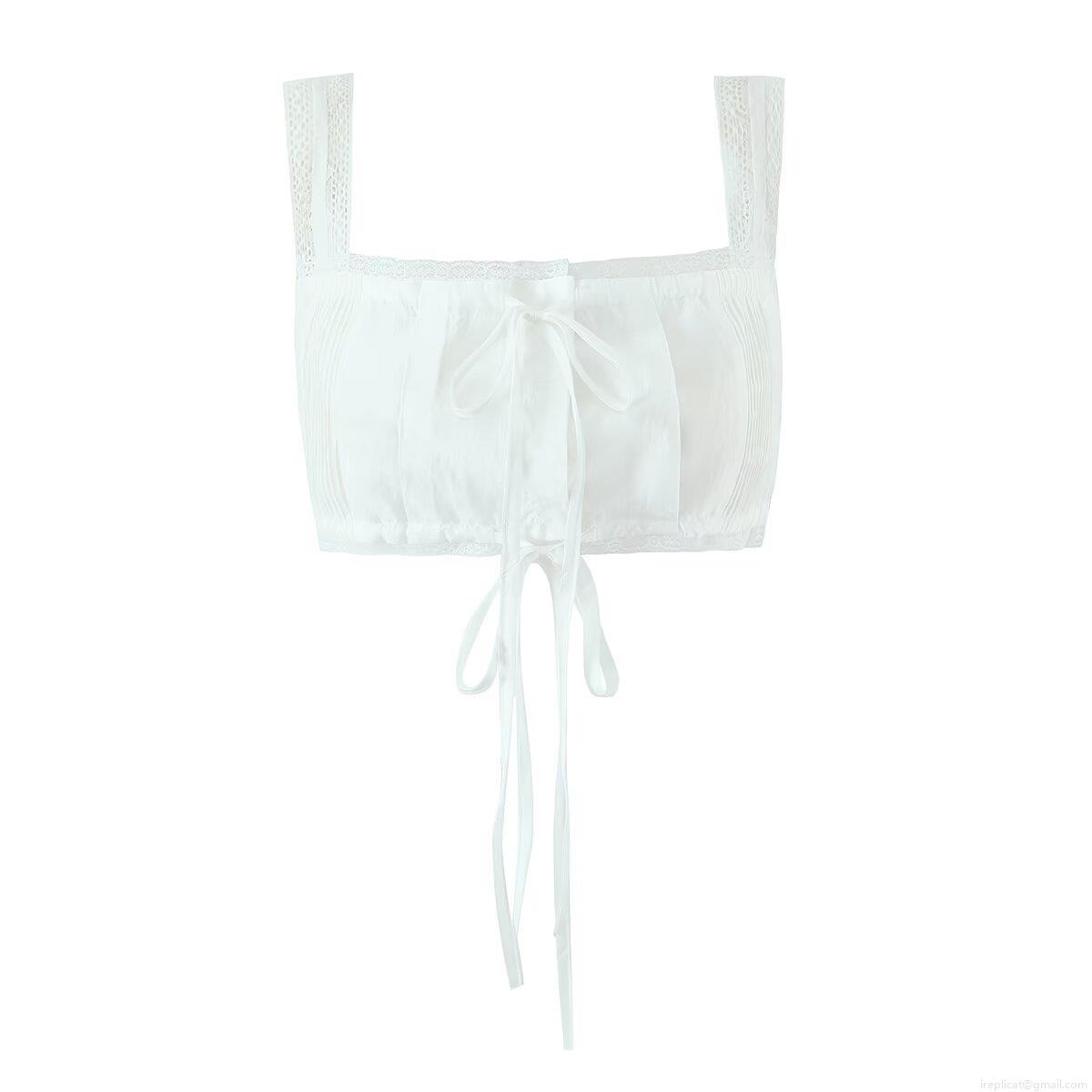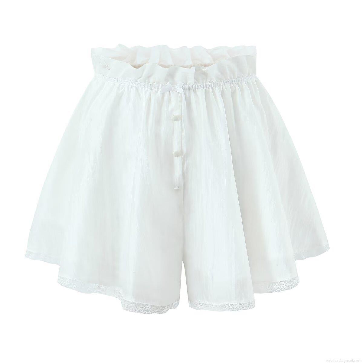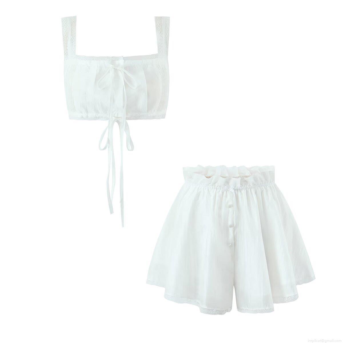 • Women's Two Piece Lace Trim Ruffle Cami Top And Elastic Waist Shorts Set Polyester Solid White Sleeveless Lounge Wear For Women Summer