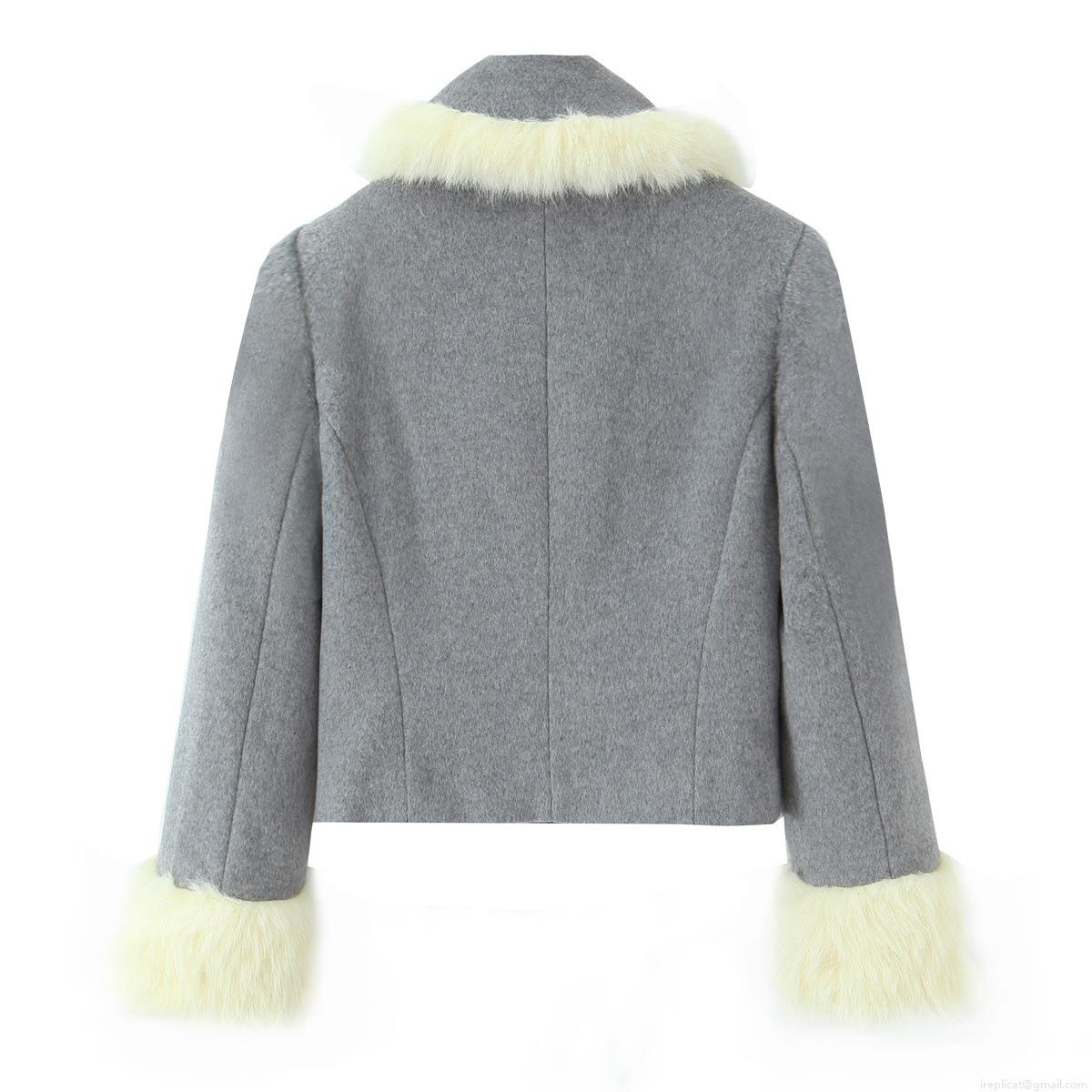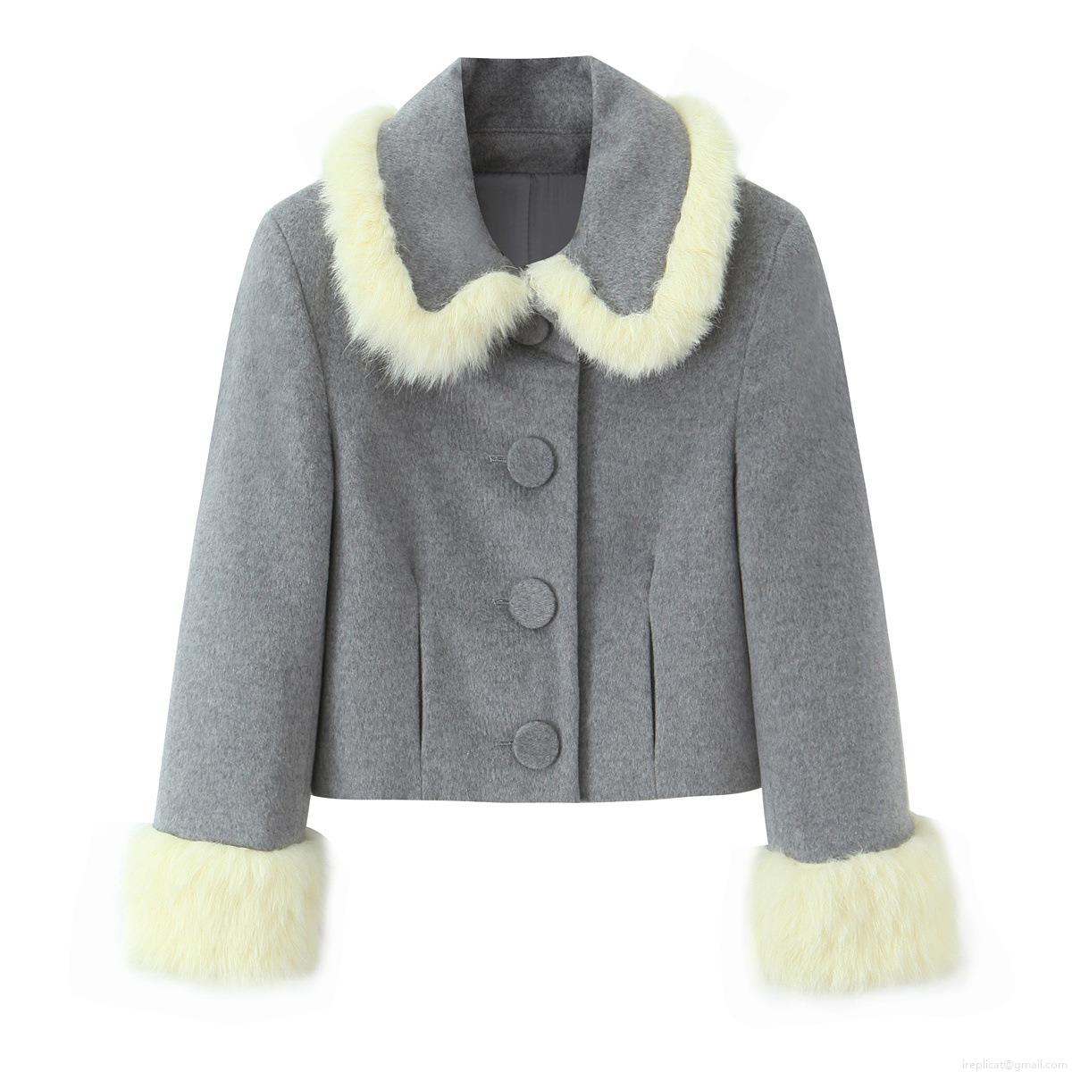 Women's Two Piece Set Faux Fur Trim Crop Jacket And Shorts Set Grey Polyester Winter Streetwear Elegant Outfit For Women