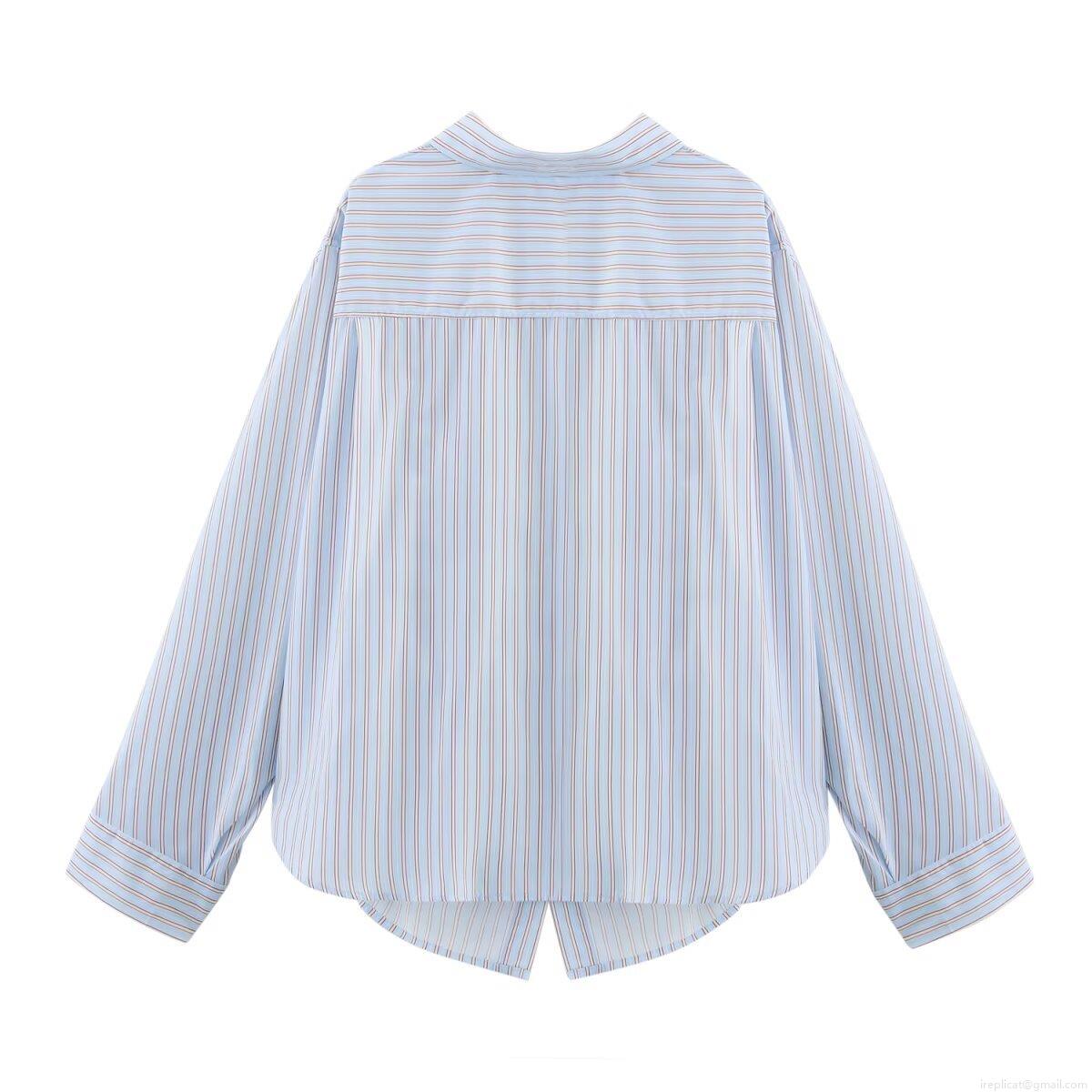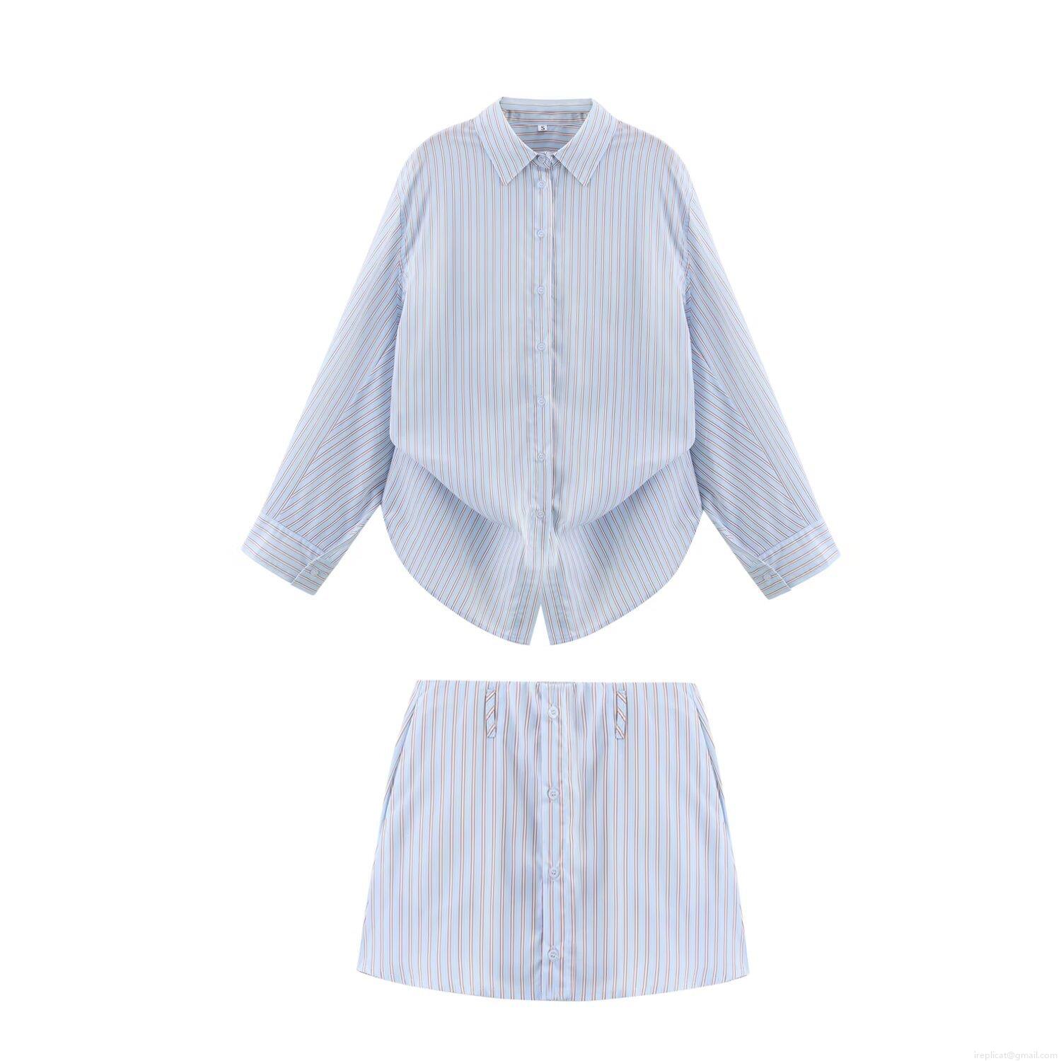 • Women's Two Piece Set Long Sleeve Striped Oversized Button Down Shirt And Matching Shorts Skirt Light Blue Vertical Stripe Casual Loose Loungewear Co-ord Outfit For Summer Vacation Beach Wear
