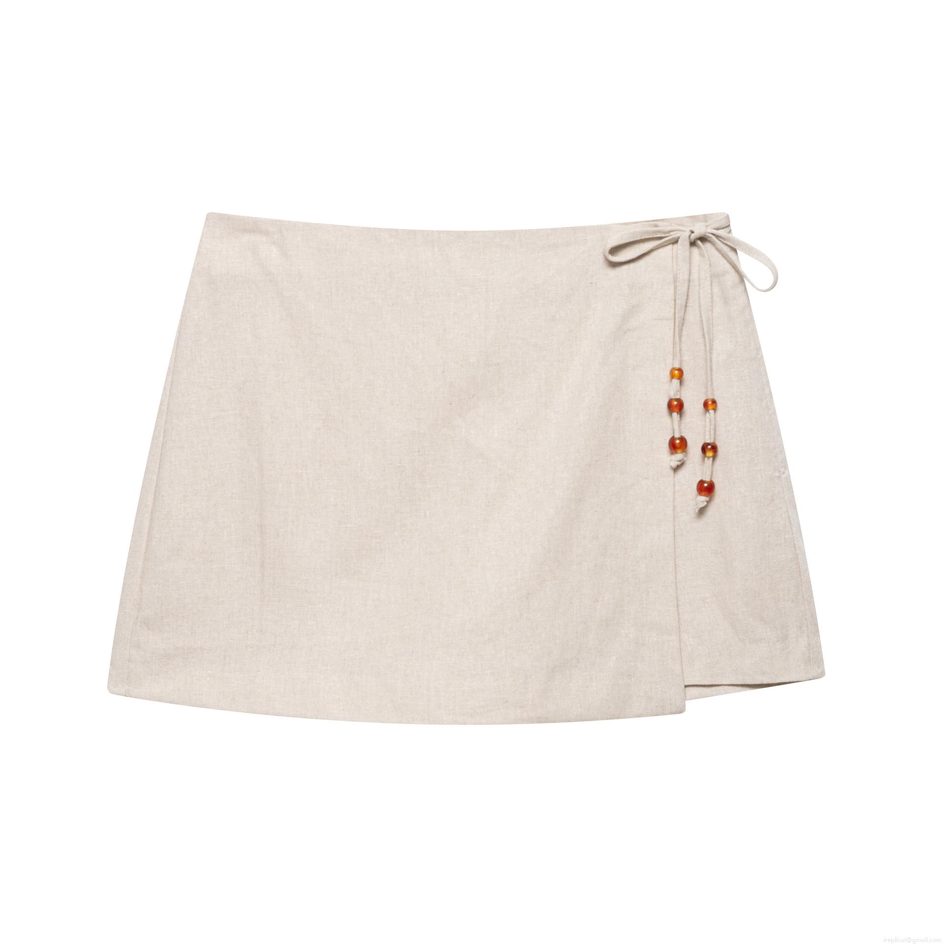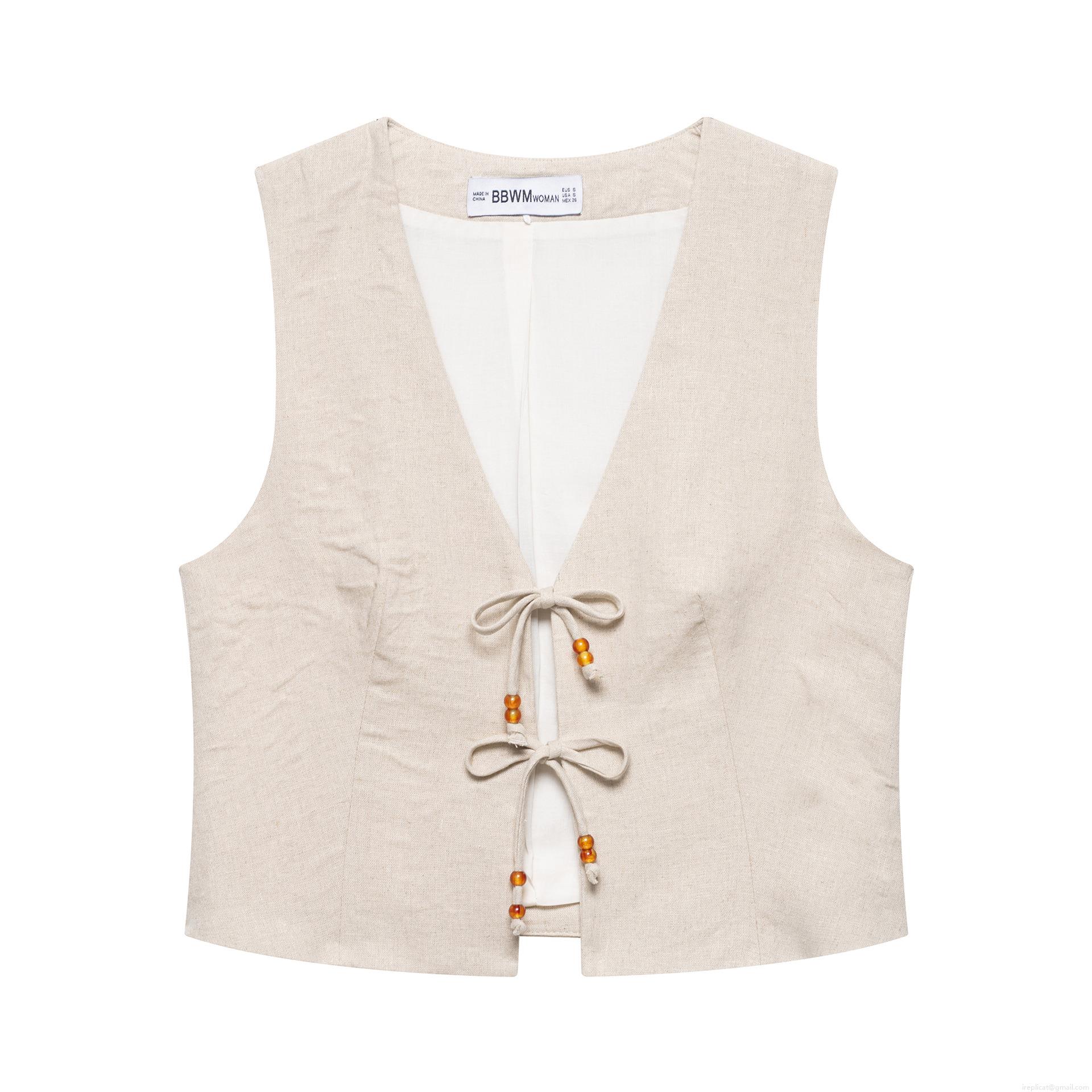 • Women's Two Piece Set Sleeveless Deep V-Neck Tie Up Vest And Wrap Around Shorts With Beaded Detail Casual Summer Beach Vacation Boho Style Beige Oatmeal