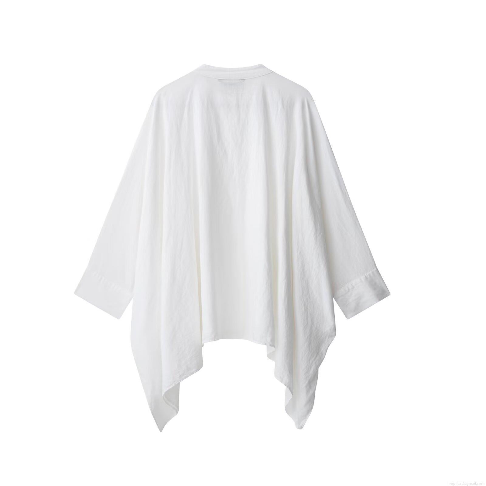 Women's Two Piece Shirt Shorts Set 100% Polyester Batwing Long Sleeve Asymmetrical Cape Shirt Drawstring High Waist Casual Lounge Suit White XS-L