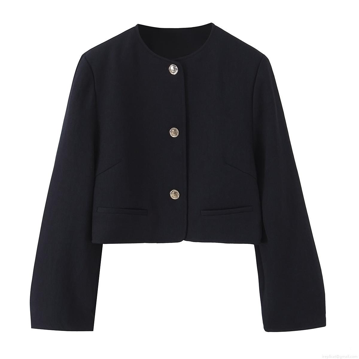 Solid Color, Splice, Collage, Single-breasted, Gold Buttons
