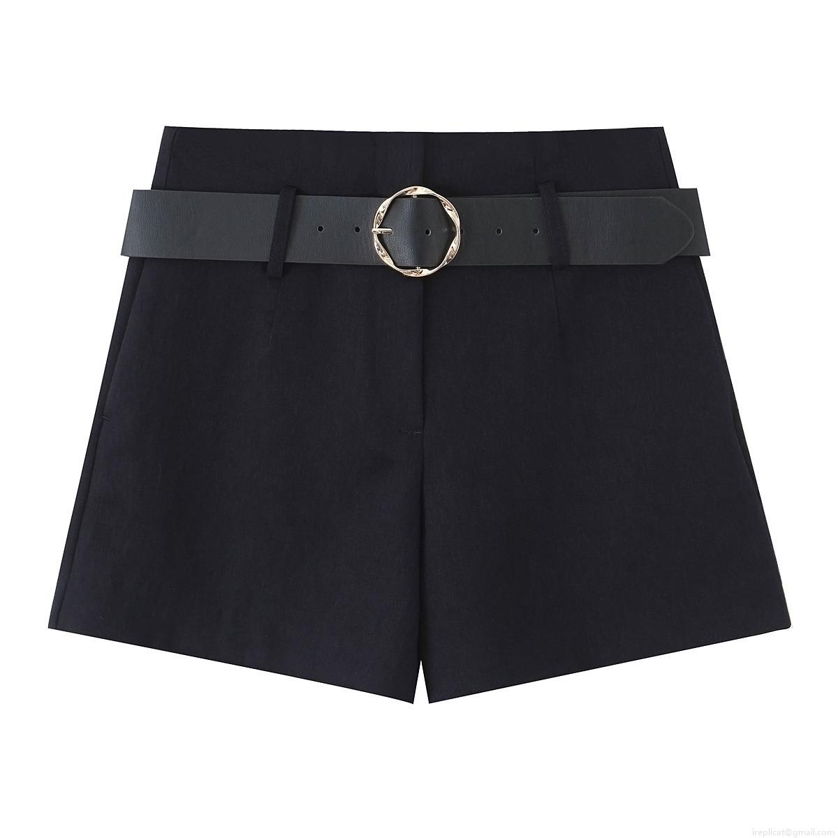 • Women's Two Piece Shorts Set Polyester Gold Button Cropped Blazer And High Waist Shorts With Belt Casual Streetwear Autumn Fashion Outfit
