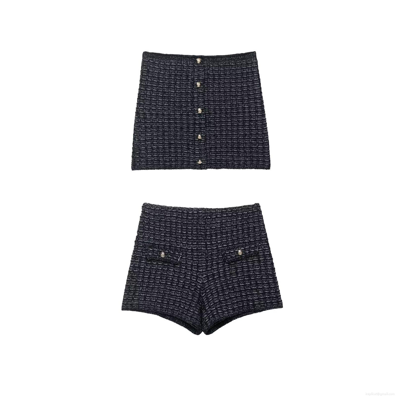 • Women's Two Piece Shorts Set Waffle Knit Strapless Tube Top and High Waist Shorts Set Solid Color Streetwear Summer Outfits With Gold Buttons