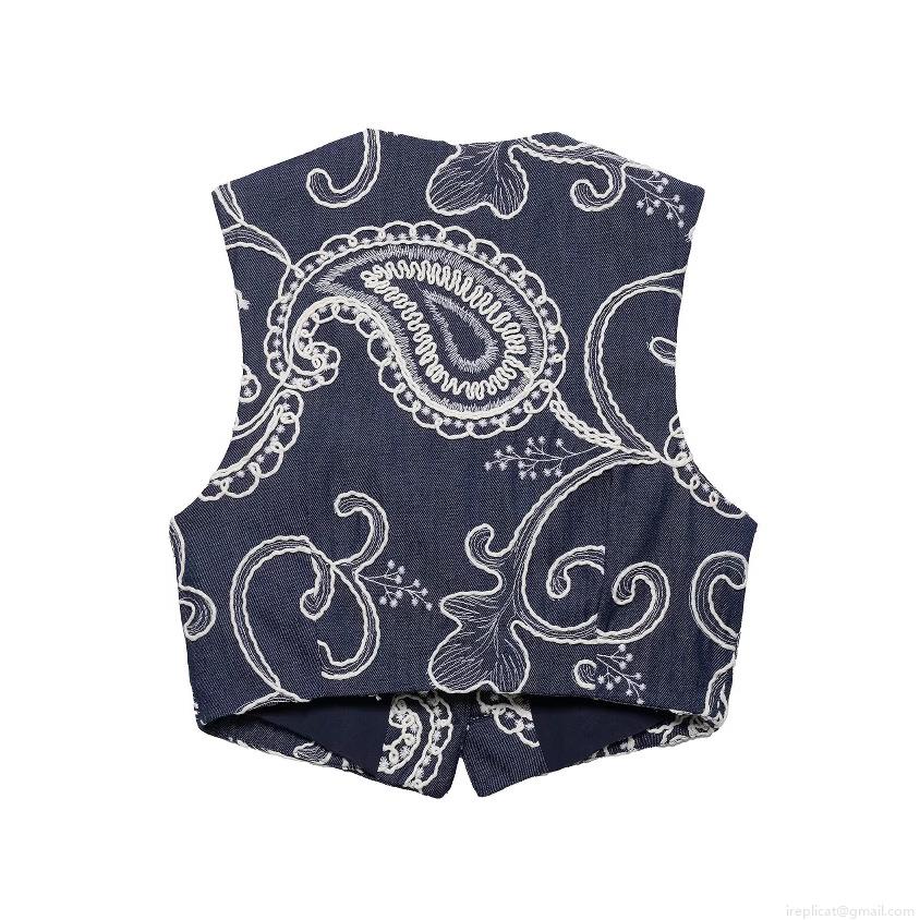 • Women's Two-Piece Set Paisley Embroidery Polyester Denim Texture Sleeveless V-Neck Crop Vest Top and High Waist Skort Shorts Co-ords for Summer Streetwear Vacation