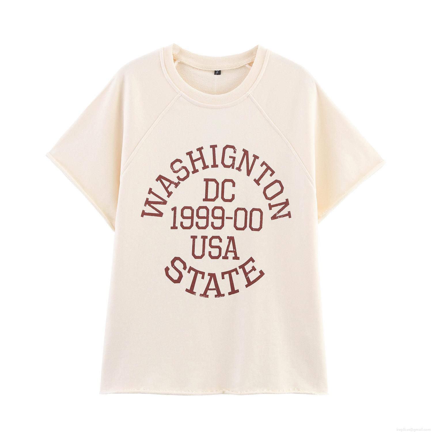 Women's Two-Piece Shorts Set 85% Cotton Retro Washington DC Letter Print Short Sleeve T-Shirt And Elastic Waist Shorts Summer Streetwear Outfit