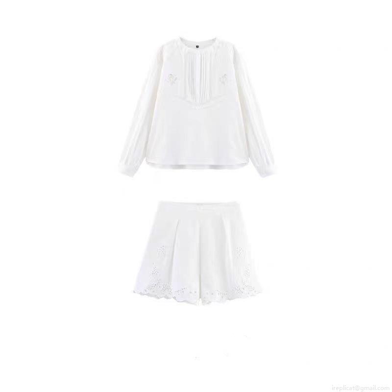 • Women's White Cotton Blend Embroidery Hollow Out Blouse And Shorts Casual Two Piece Set Floral Lace Top Short Pant Summer Beach Outfits For Women