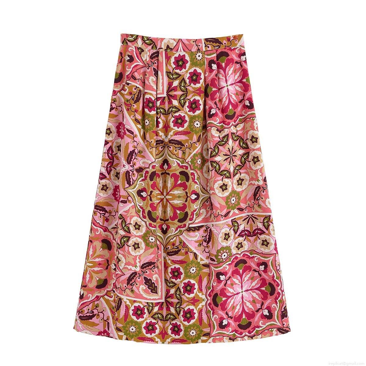 • Bohemian Floral Print Sleeveless Crop Knot Top And High Waist Button Front Mid-Length Skirt For Women Vacation Beach Streetwear Casual Set