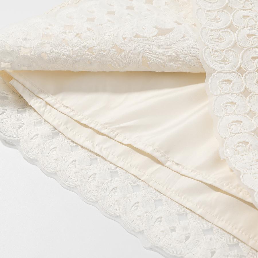 • Elegant Women's Two-Piece Skirt Set French Sweet White Lace Embroidery Hollow Out Lantern Sleeve Top and Mini Skirt Set Casual Vacation Summer Outfits