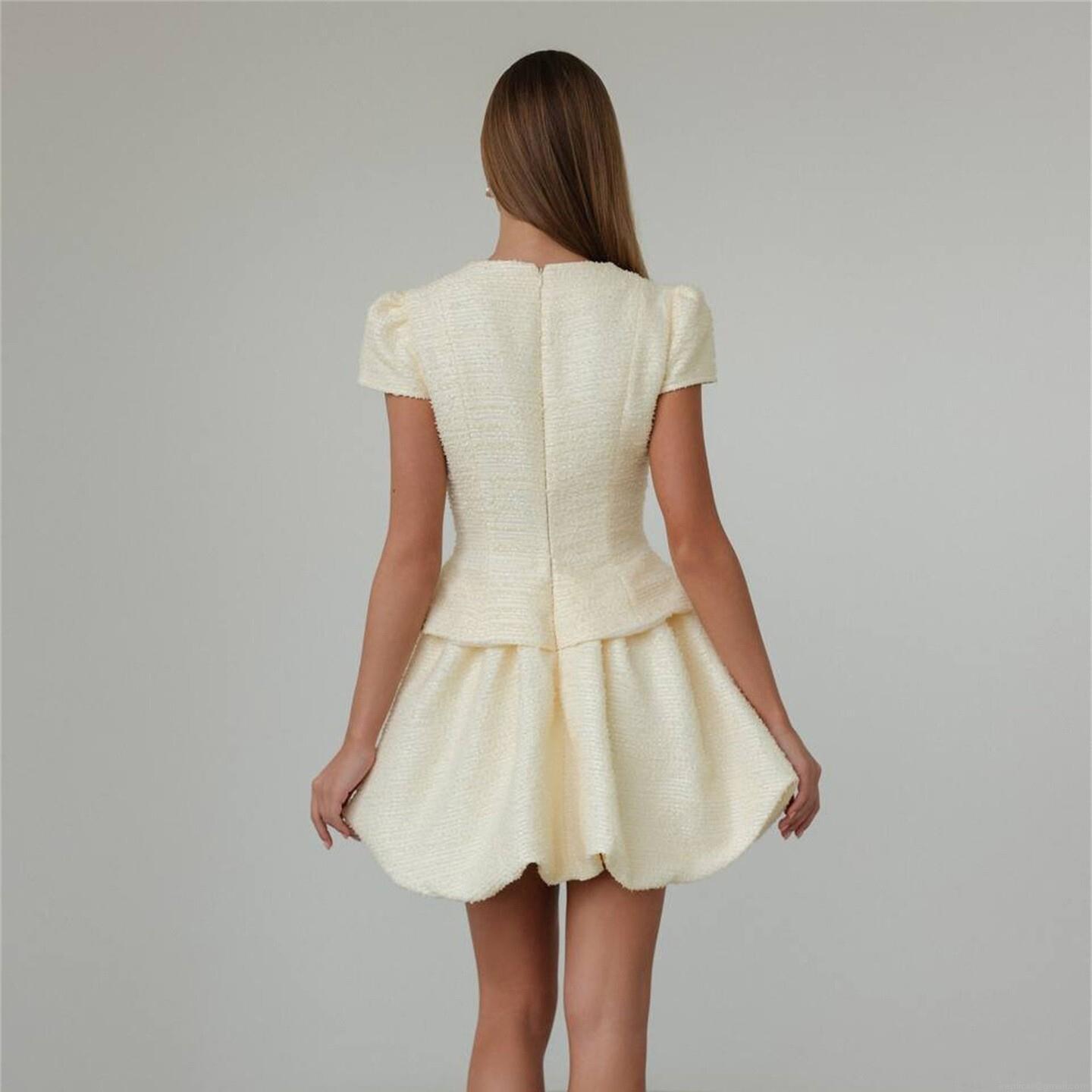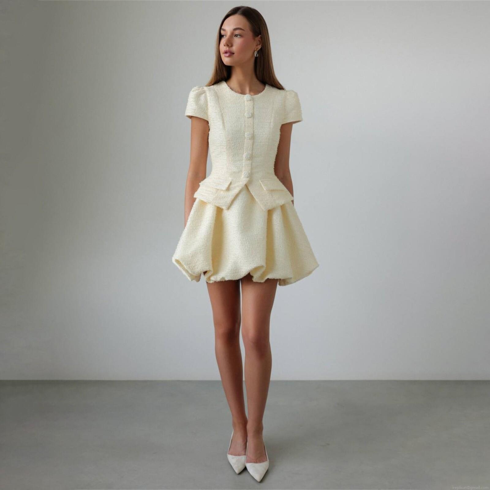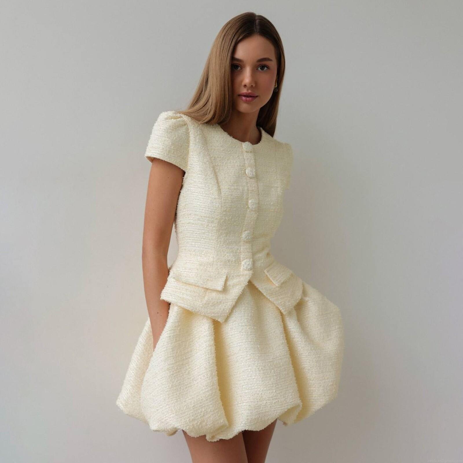 • Elegant Women's Two-Piece Tweed Set Short Sleeve Button Up Top And Peplum Bubble Skirt Elegant Chanel Style Formal Office Lady Party Wear Clothing Set