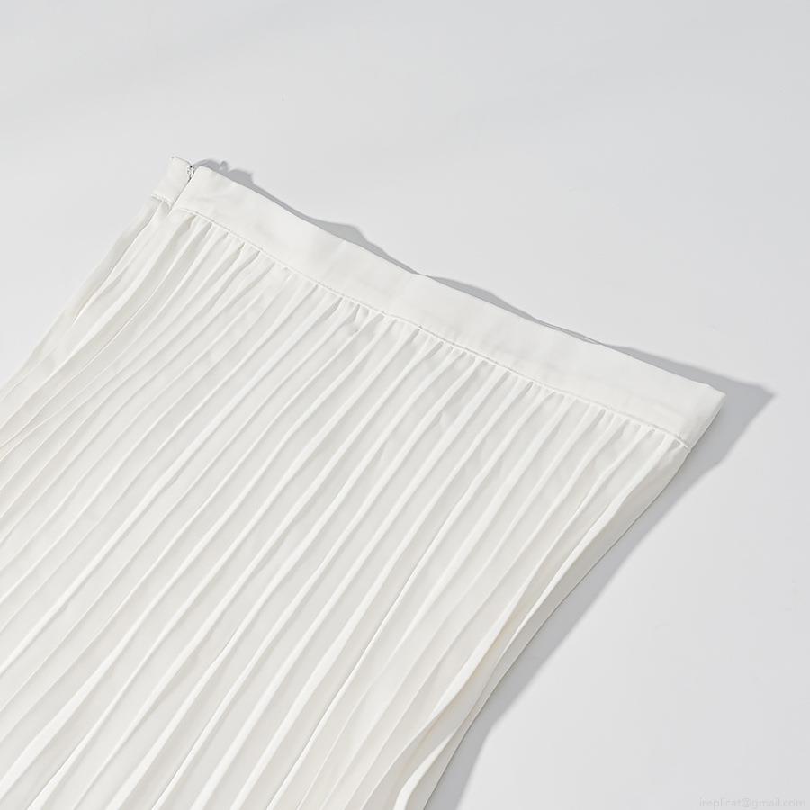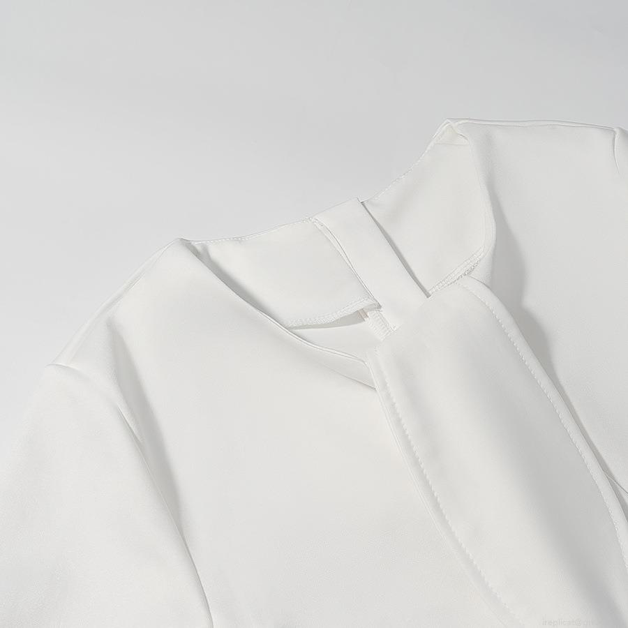 • Elegant Women's White 2-Piece Skirt Set Polyester Spandex Short Sleeve Bow Tie Neck Top and High Waist Pleated Midi Skirt Casual Chic Office Outfit