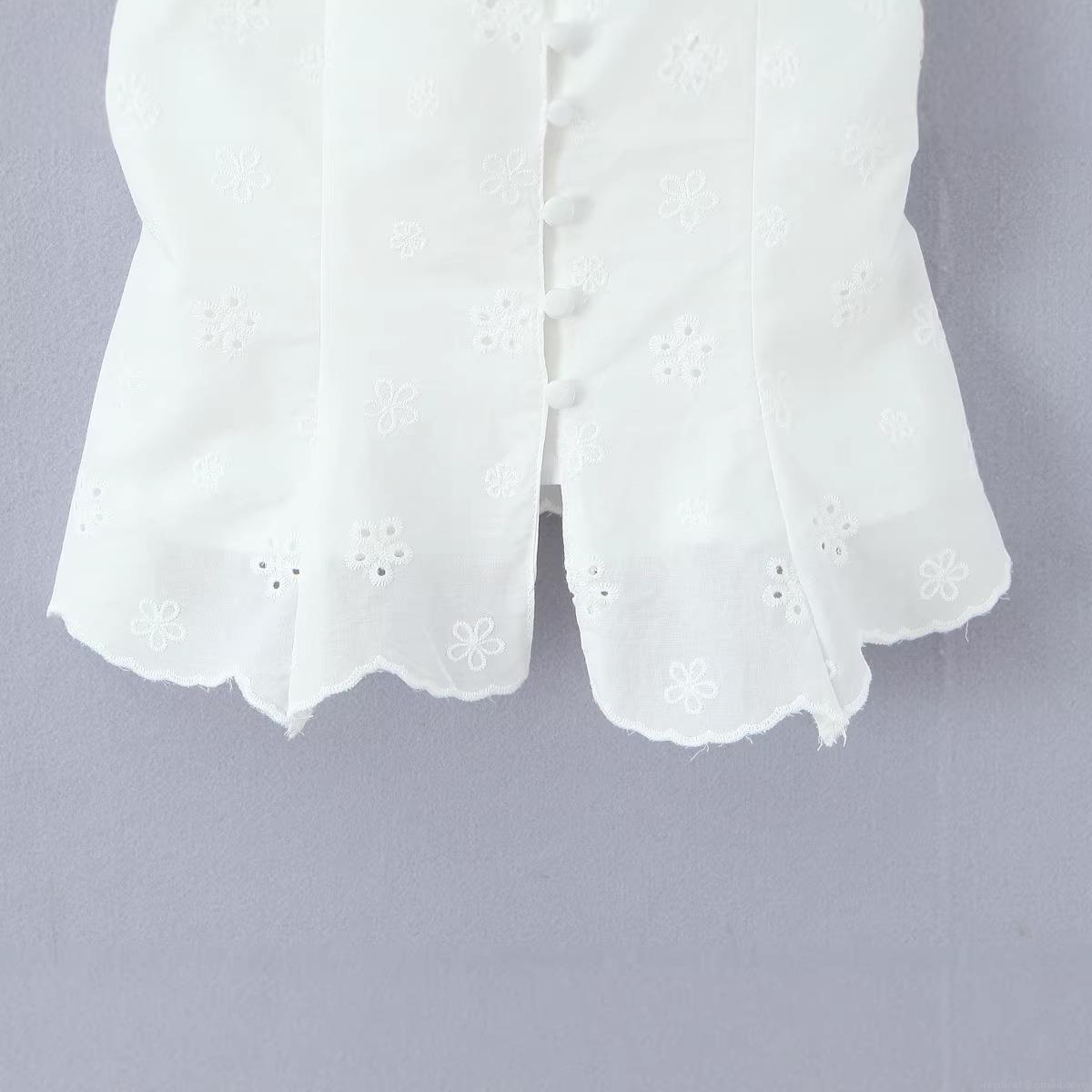 Solid Color, Embroidery, Pleats, Lace, Button, Floral Hollow