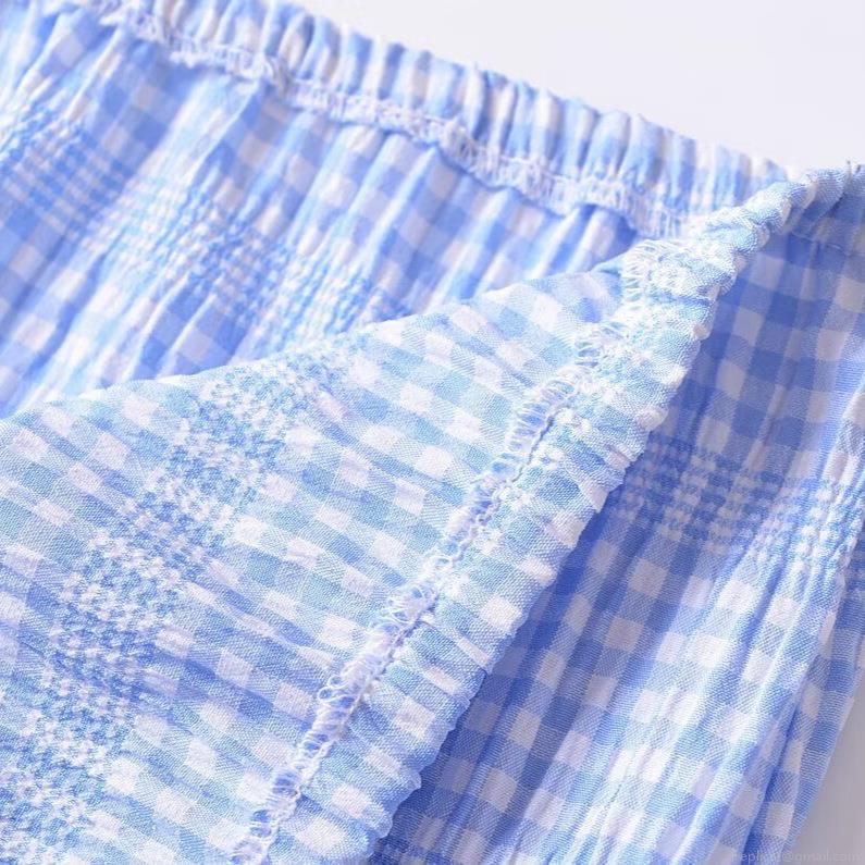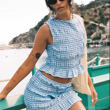 • French Style Plaid Two-Piece Skirt Set Sleeveless Round Neck Chiffon Top and Shirring Mini Skirt for Women Summer Beach Vacation Wear