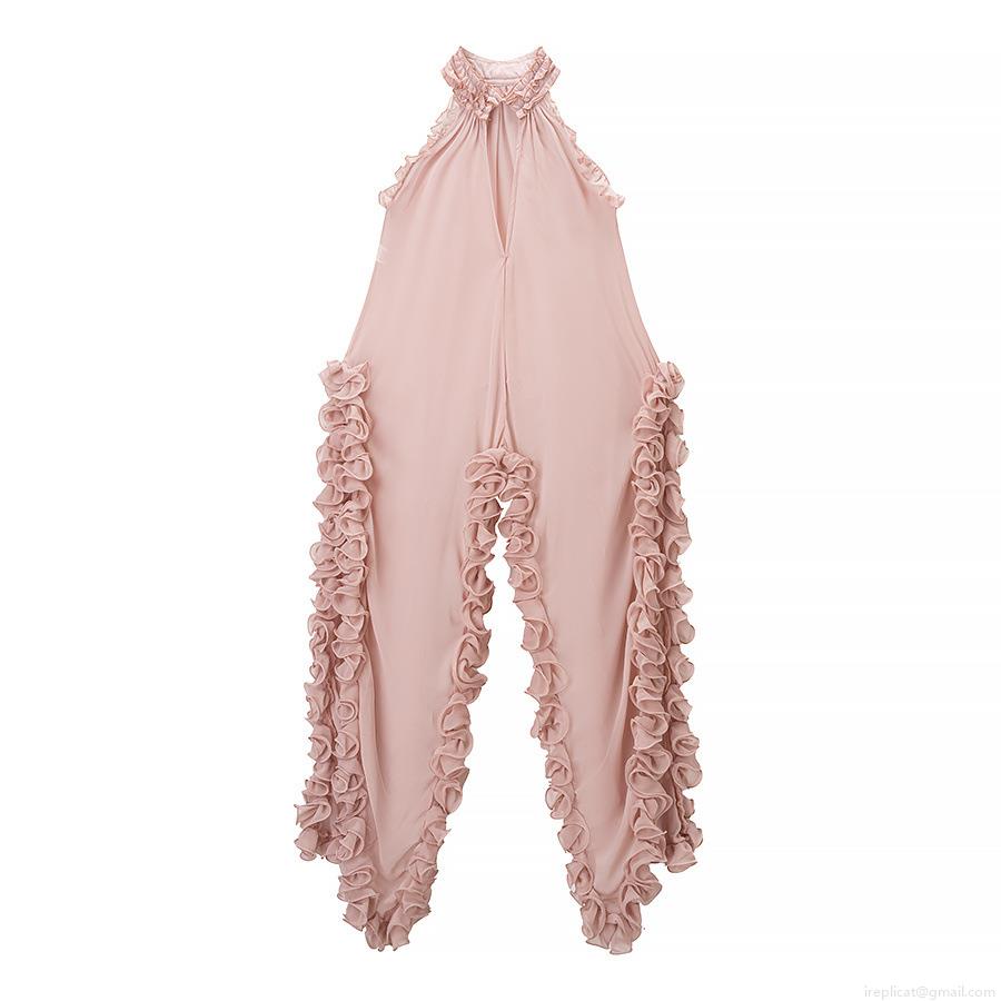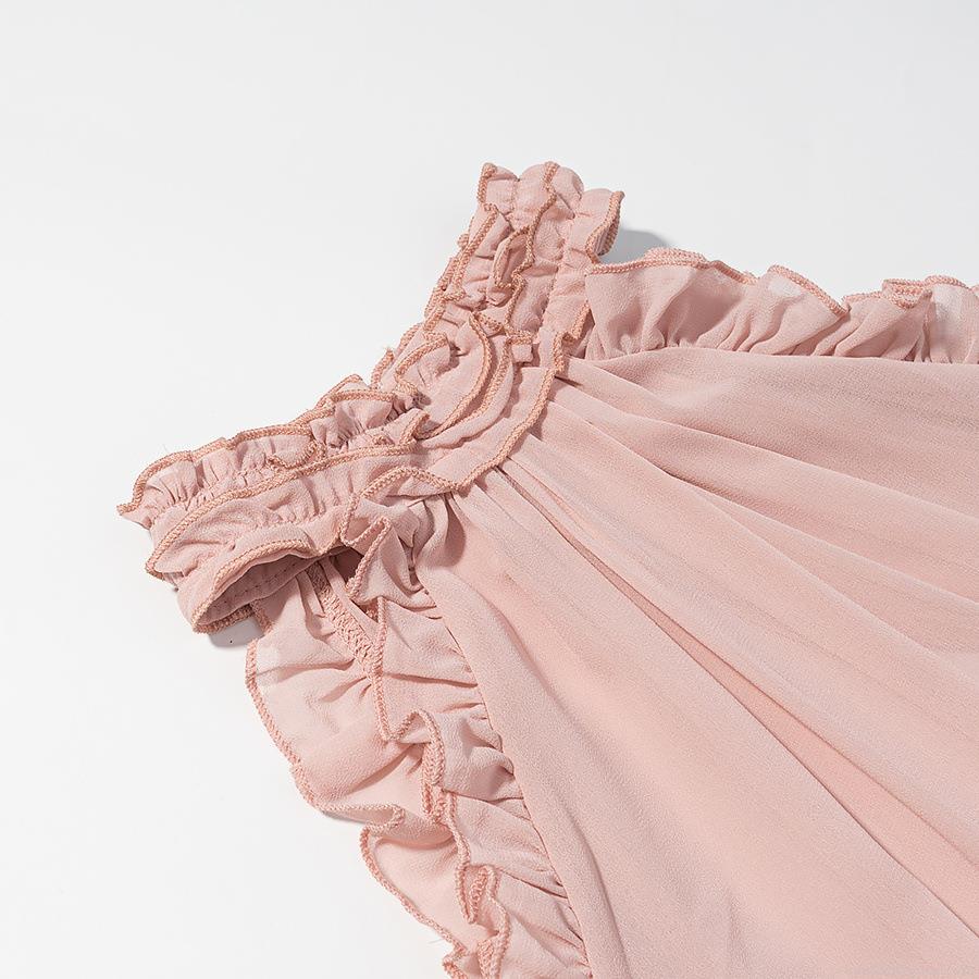 • Sexy Halter Backless Ruffle Two Piece Set Women Chiffon Polyester Solid Color Mini Skirt and Romper Outfit for Vacation Party Clubwear Sweet Pink Sets