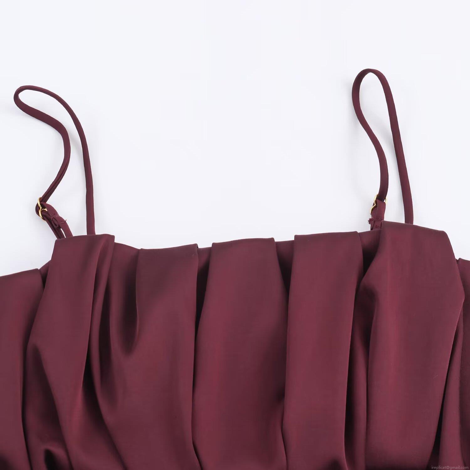 • Sexy Wine Red Satin Spaghetti Strap Pleated Crop Top And Bubble Hem Mini Skirt Two Piece Set For Women Elegant Party Clubwear Celeb Style Outfits