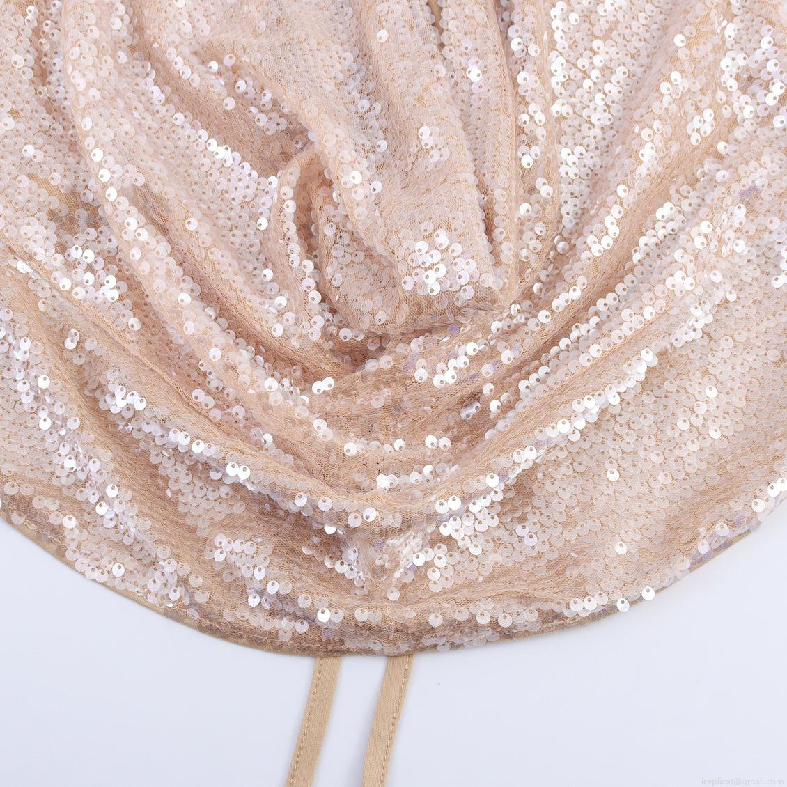 Sexy Women's Sequin Halter Cowl Neck Top And Satin Fishtail Long Skirt Two-Piece Set Champagne Backless Evening Party Banquet Outfits