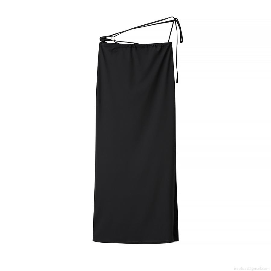 • Sexy Women's Two Piece Skirt Set One Shoulder Ruffle Crop Top and High Waist Cutout Maxi Skirt With Pearl Decoration Slim Knit Clubwear Vacation Outfit