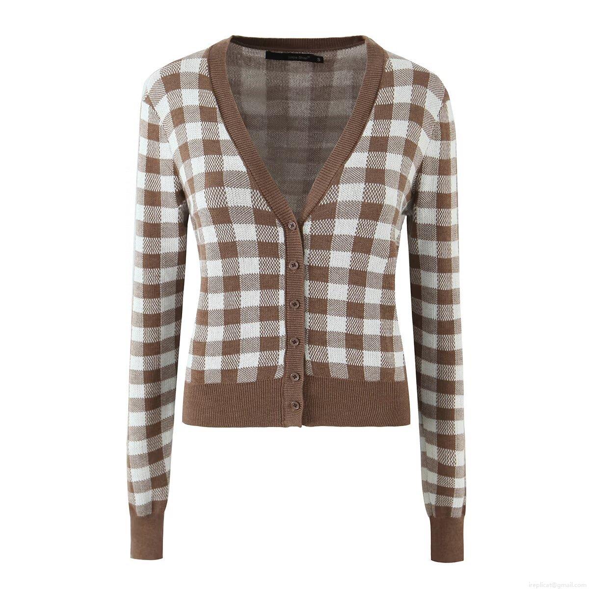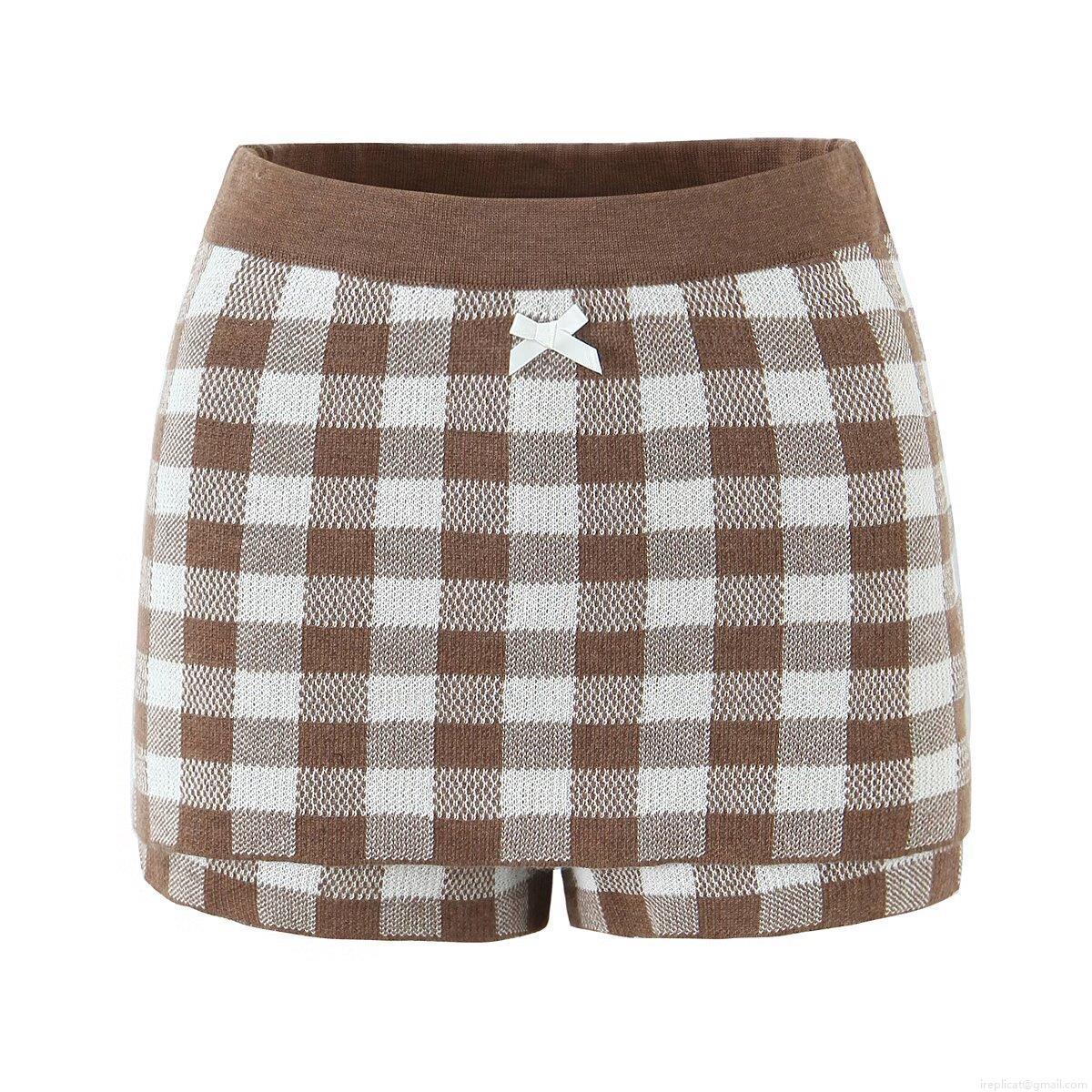 • Vintage Plaid Knit Cardigan And Skirt Two Piece Set Women V-neck Single Breasted Long Sleeve Sweater Top And High Waist Bodycon Skirt With Bow Decoration Brown White Checkered Outfits Autumn Winter Fashion