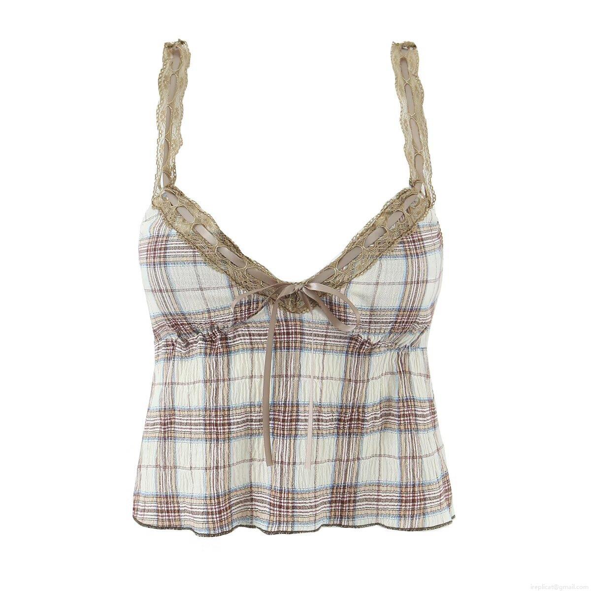 • Women 2 Piece Plaid Skirt Set Vintage Lace Trim Sleeveless Camisole Crop Top And High Waist Pleated Mini Skirt Summer Streetwear Outfits