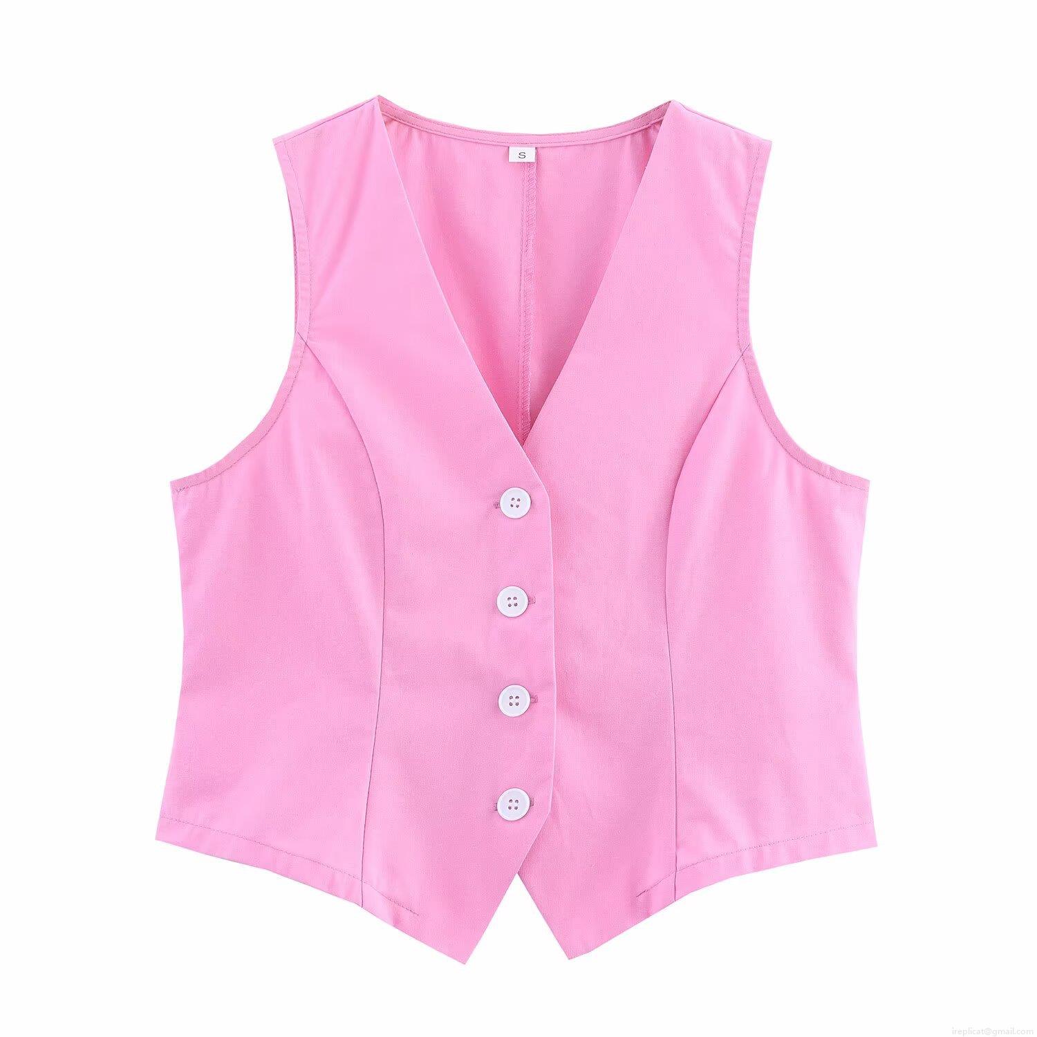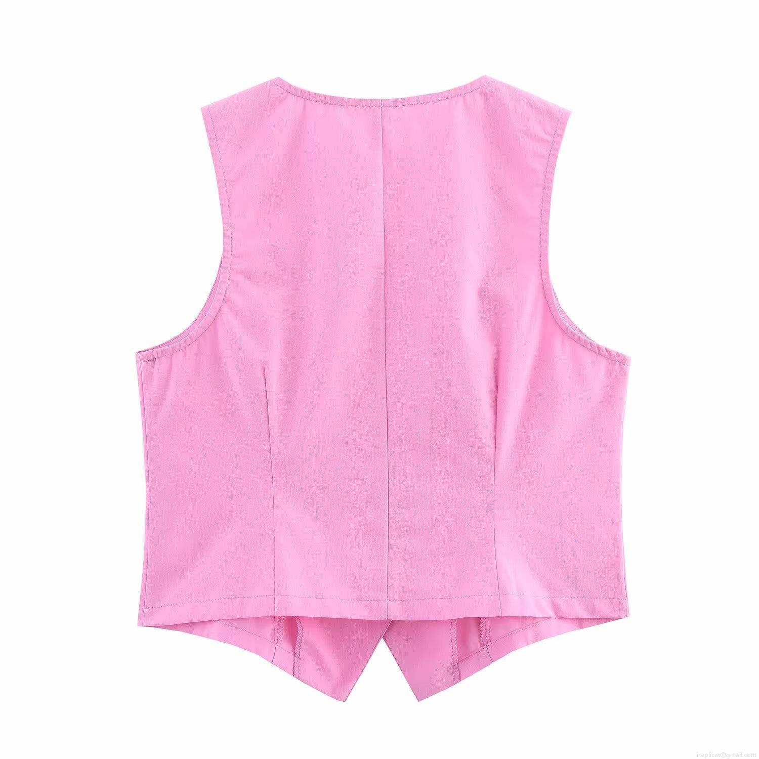 • Women 2 Piece Skirt Set Cotton Polyester V-Neck Sleeveless Button Vest High Waisted A-Line Midi Skirt Chic Summer Casual Outfit Bright Pink