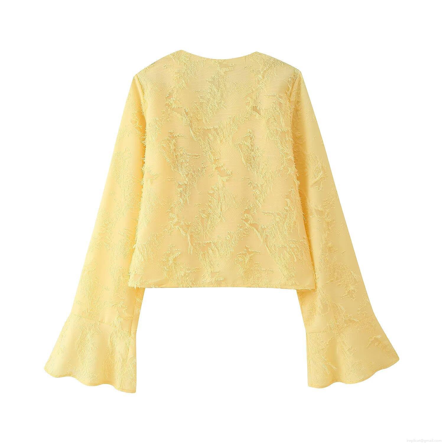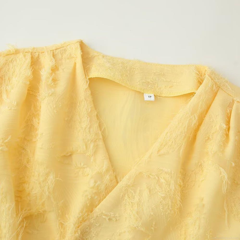 Solid Color, V-neck, Bell Sleeves, Tassel Jacquard, 3d Feather Texture