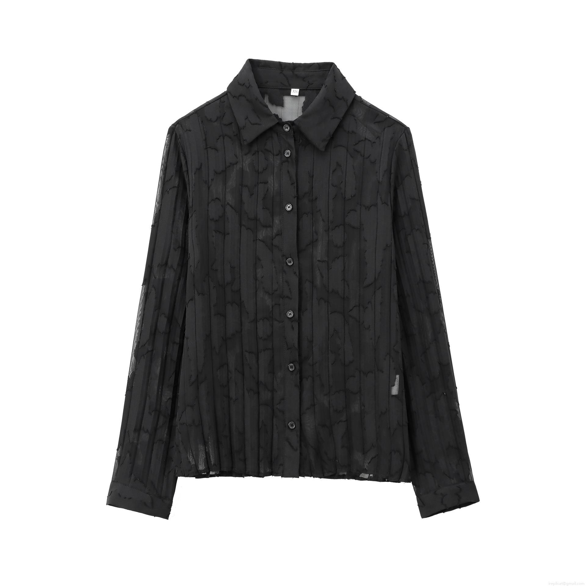 Women Black Burnout Chiffon Long Sleeve Shirt And High Waist Pleated Maxi Skirt Two Piece Set Semi Transparent Elegant Polyester Outfits For Party Streetwear