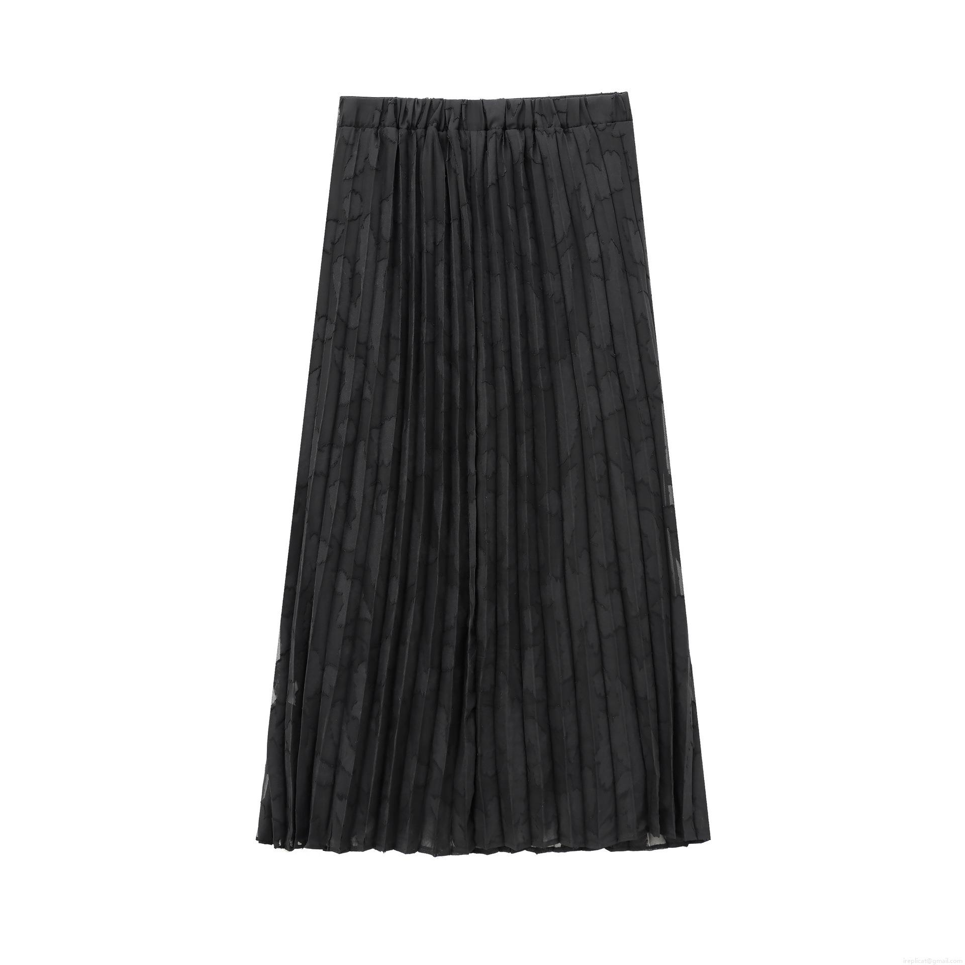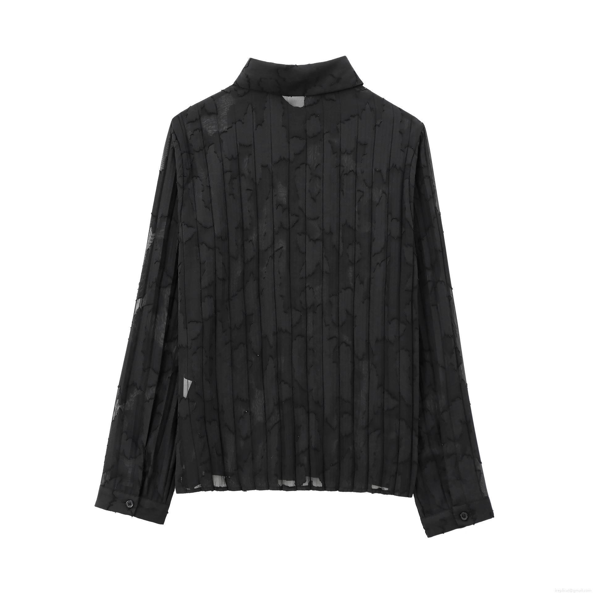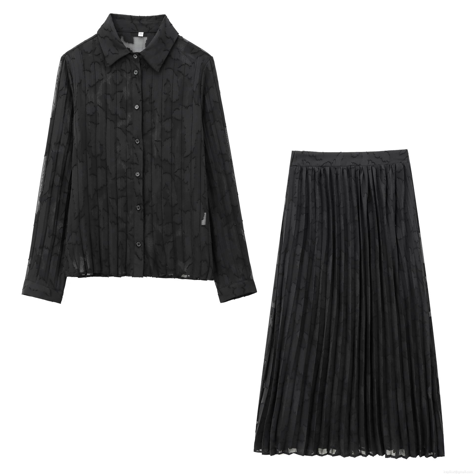 • Women Black Burnout Chiffon Long Sleeve Shirt And High Waist Pleated Maxi Skirt Two Piece Set Semi Transparent Elegant Polyester Outfits For Party Streetwear