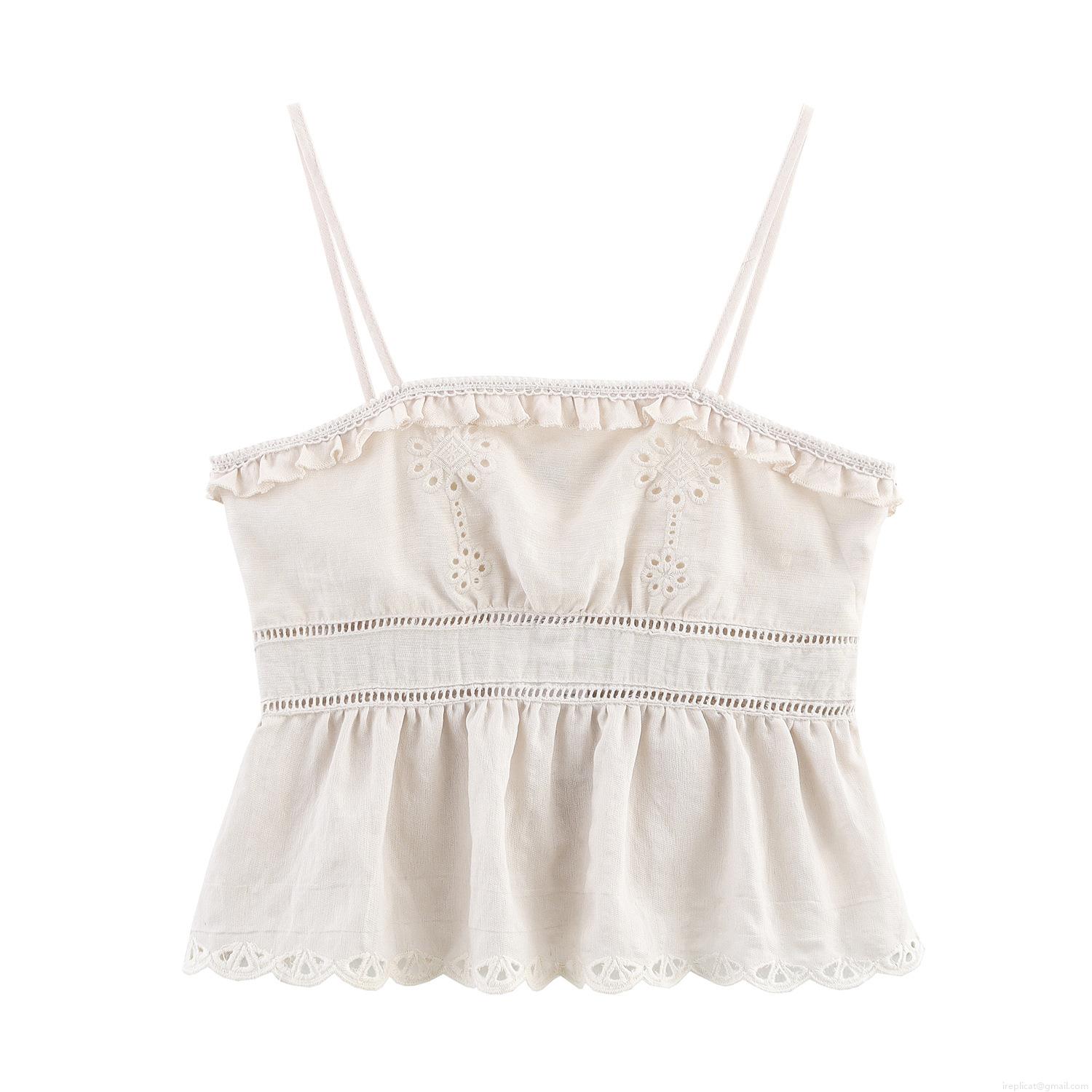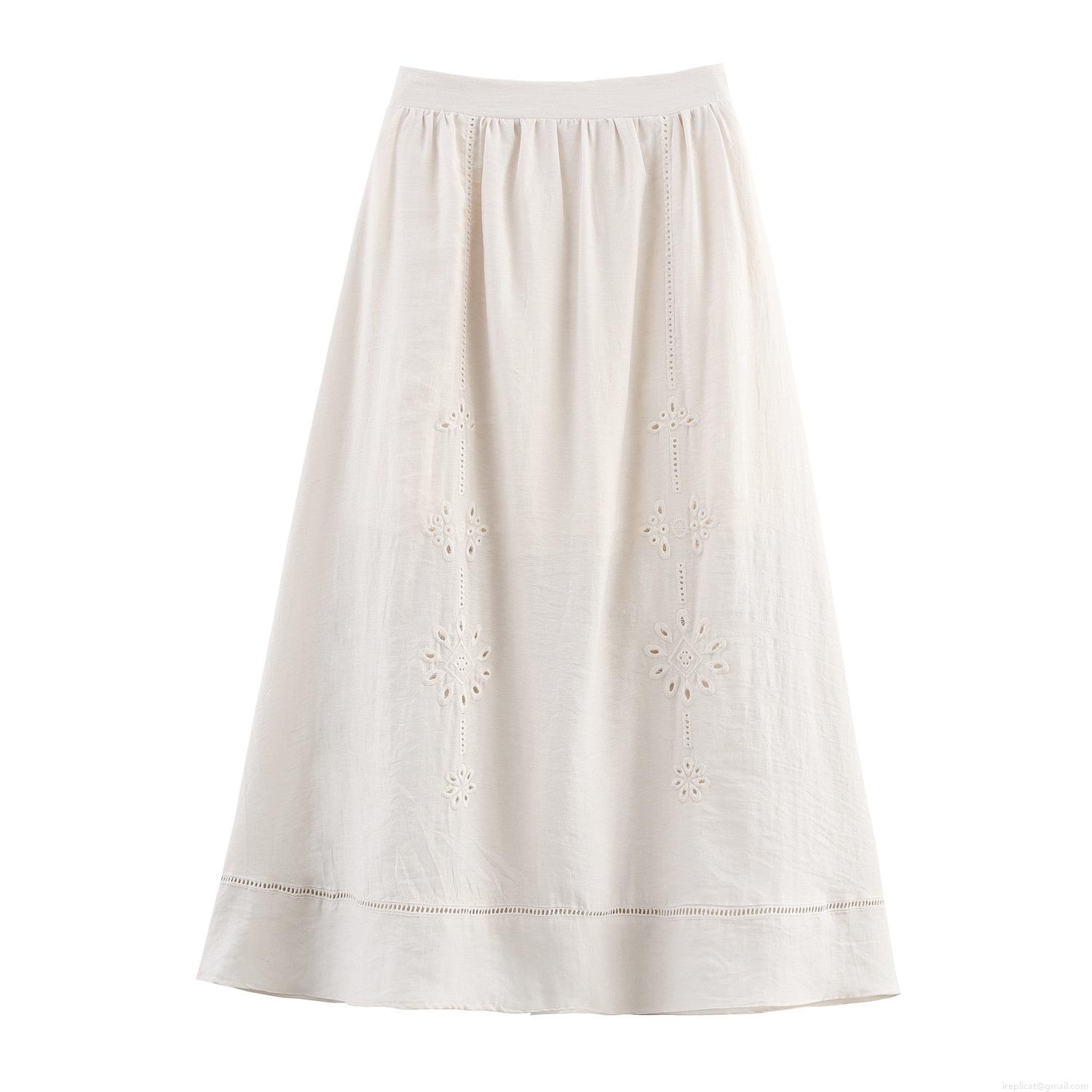 • Women Bohemian Hollow Out Embroidery Two-Piece Set Ruffle Cami Top and High Waist Midi Skirt Off-White Cotton Blend Summer Resort Vacation Wear
