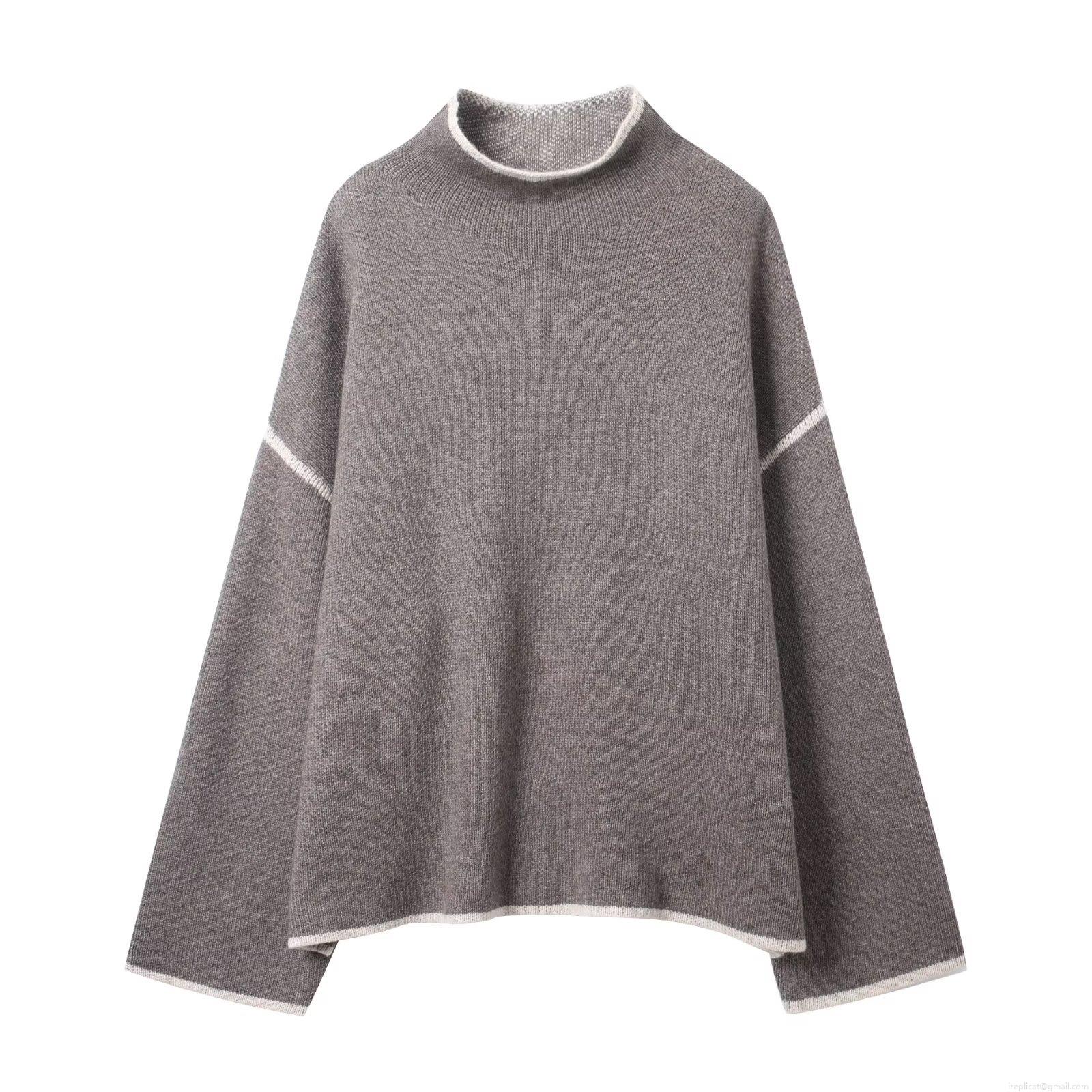 Solid Color, Knitted Ribbed, Contrasting Edges, Contrasting Trim, Dropped Shoulders