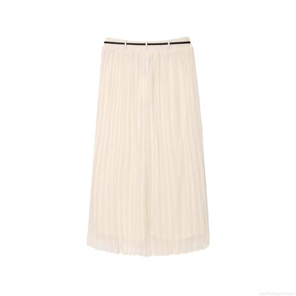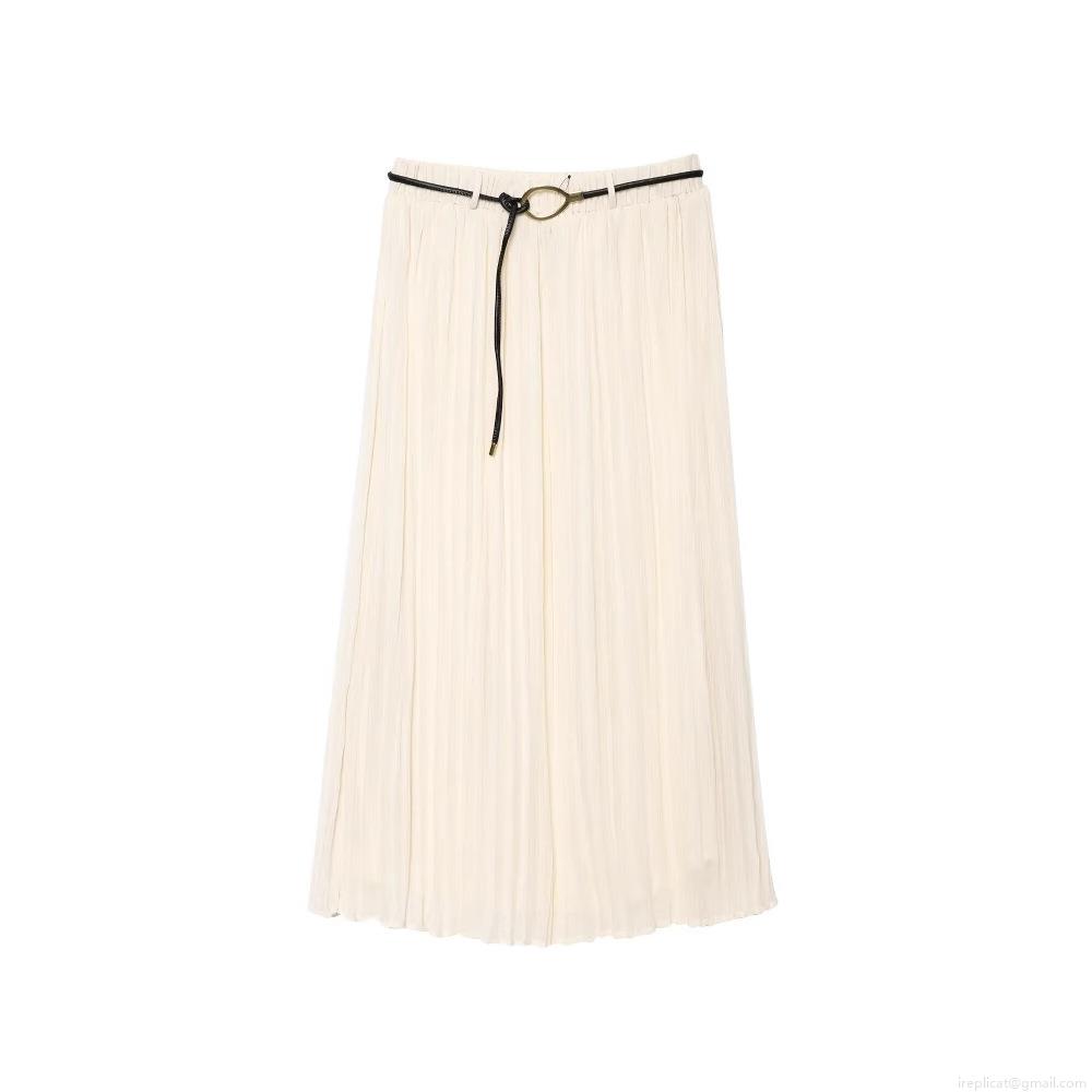 • Women Elegant Chiffon Ruffle Blouse And Pleated Midi Skirt Two Piece Set With Belt Contrast Edging Long Sleeve Lantern Sleeve Shirt Outfits For Daily Date Office