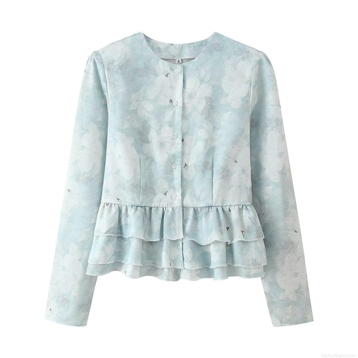 • Women Elegant Floral Print 2 Piece Set Long Sleeve Peplum Top Blouse And High Waist Mermaid Midi Skirt Vacation Streetwear Outfit For Women