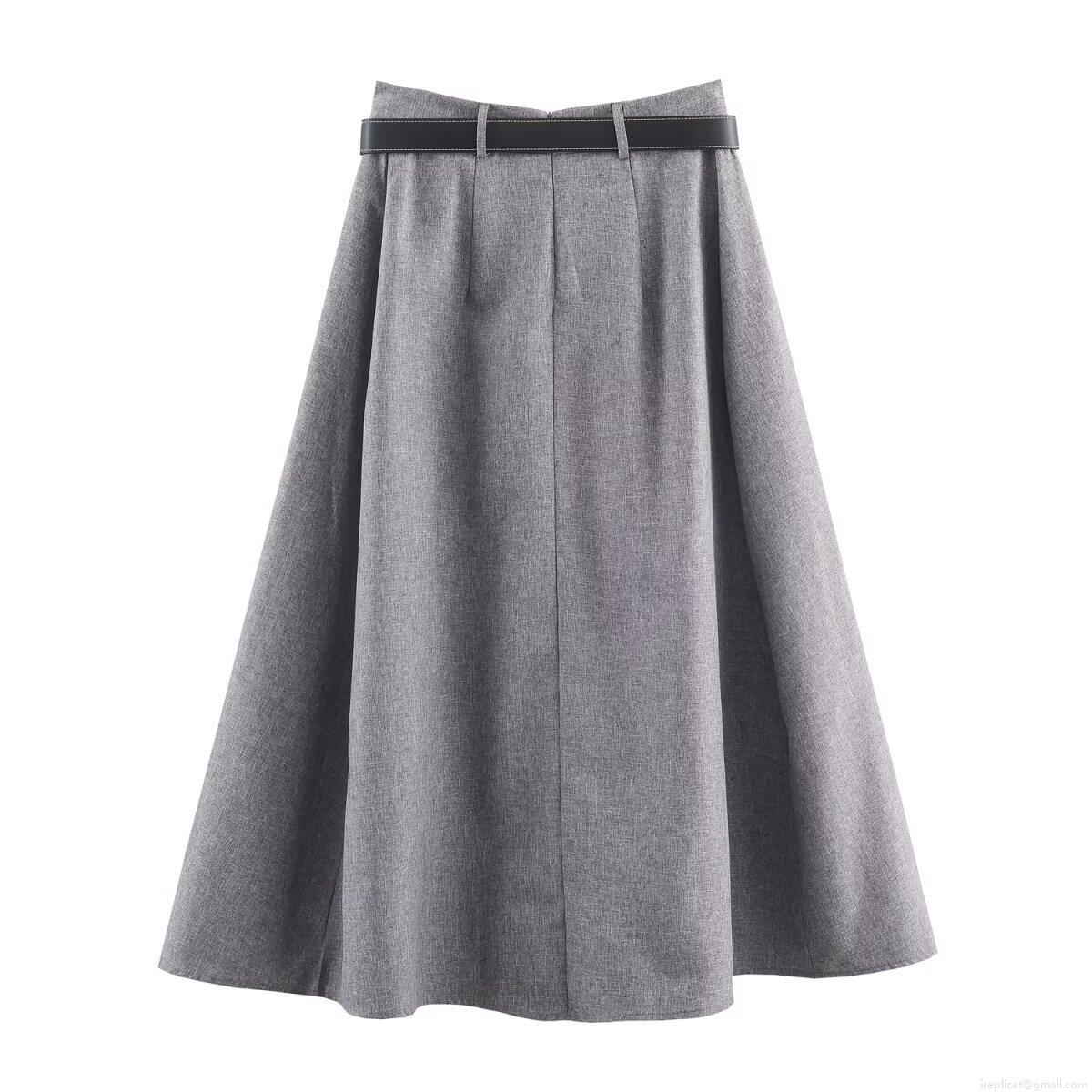 • Women Elegant Herringbone Blazer And Skirt Set Padded Shoulder Long Sleeve Jacket High Waist Pleated A-Line Maxi Skirt With Belt Office Lady 2 Piece Co-ord Set Grey