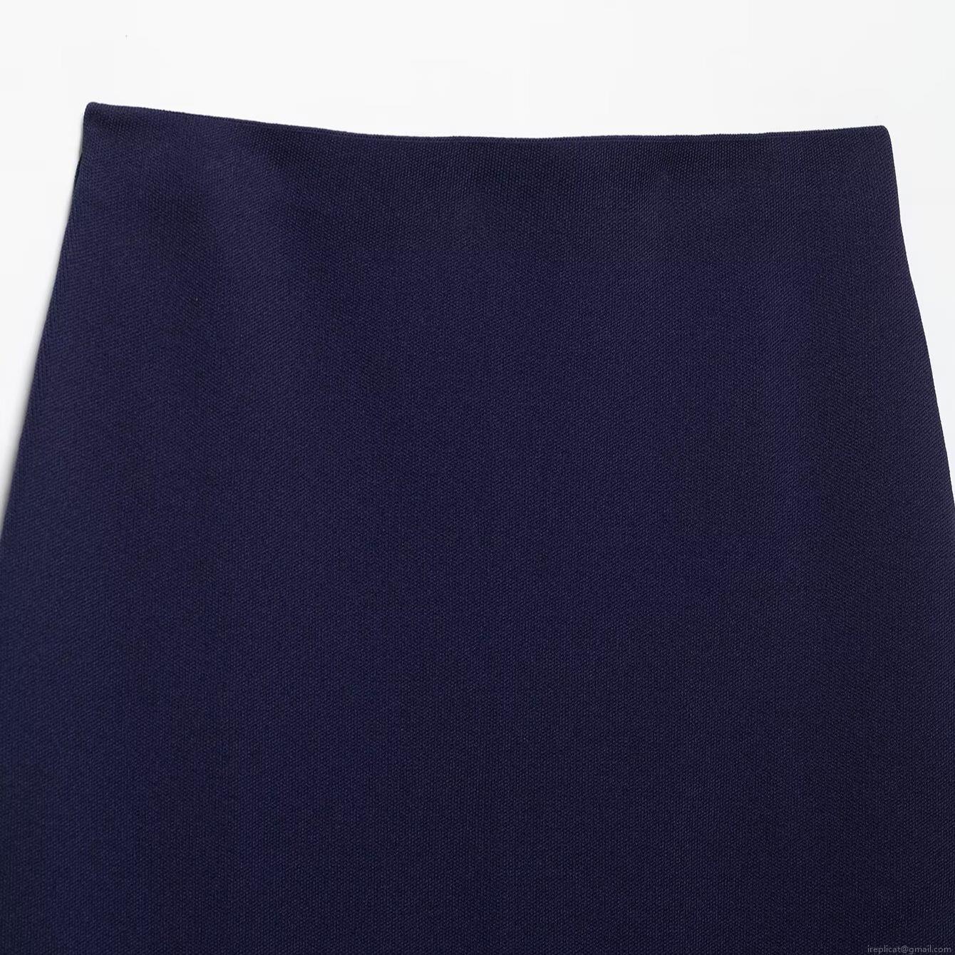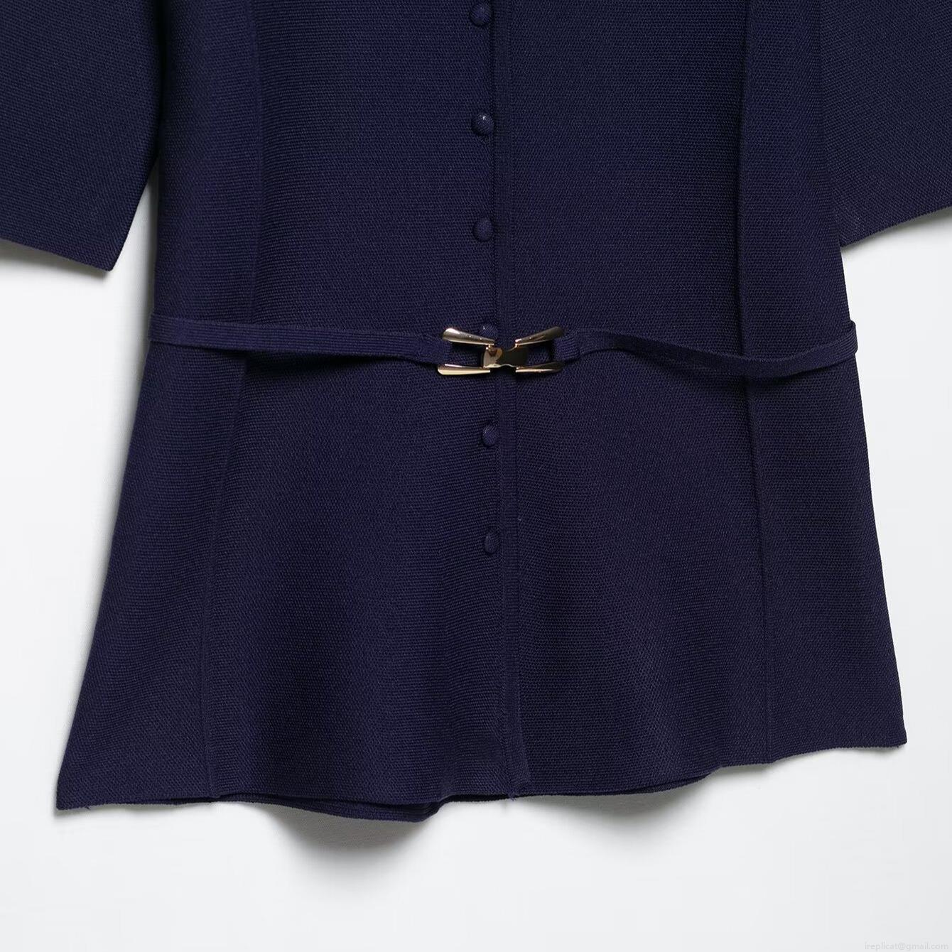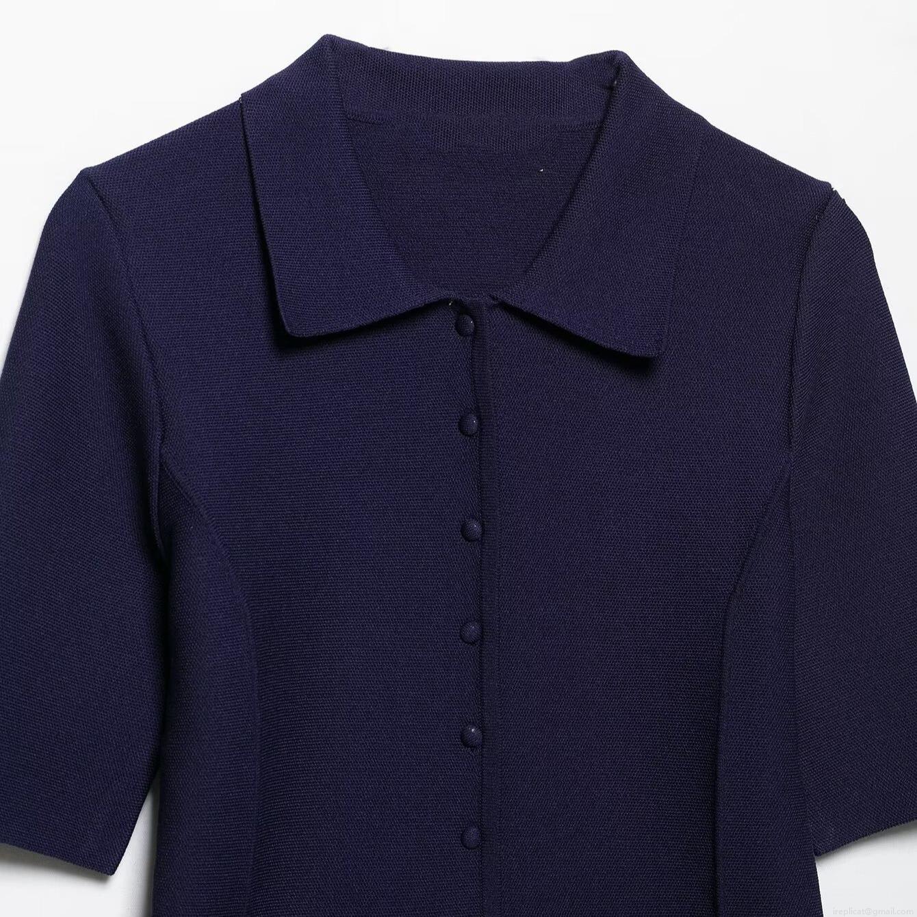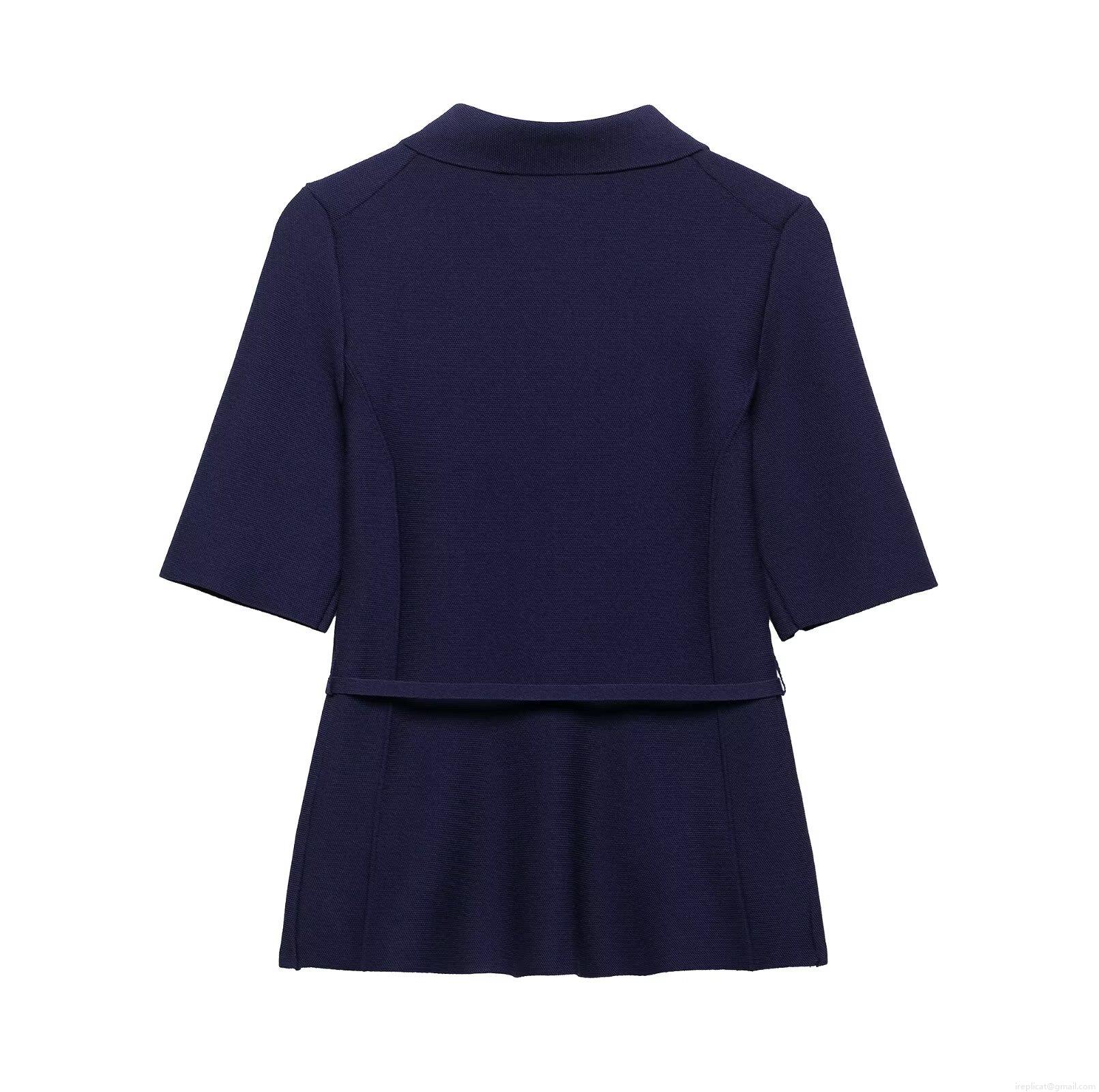 • Women Elegant Knit 2-Piece Skirt Set Short Sleeve Polo Neck Button Down Top With Belted Waist And Midi Pencil Skirt Navy Blue Commuter Office Wear Spring Summer Chic Suit