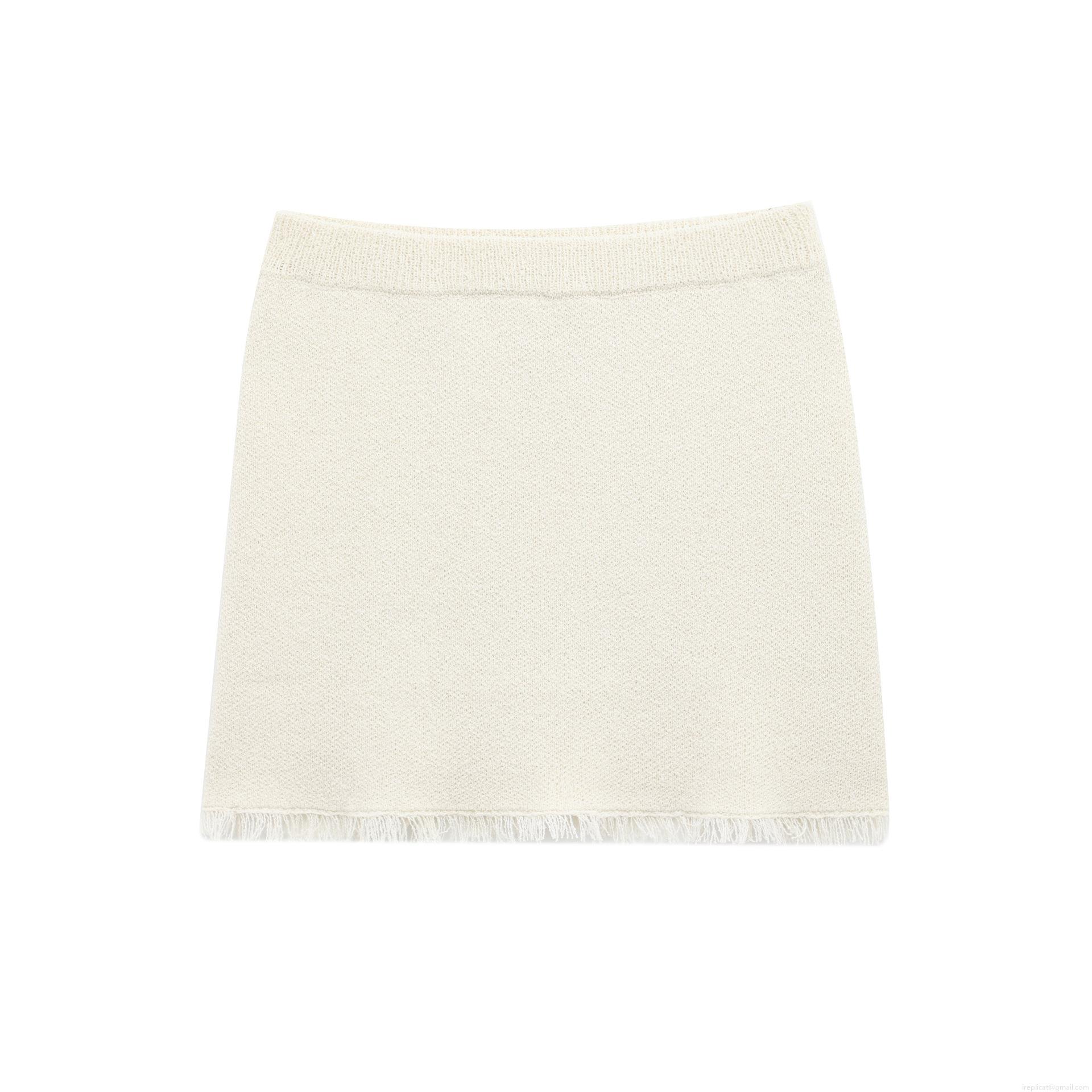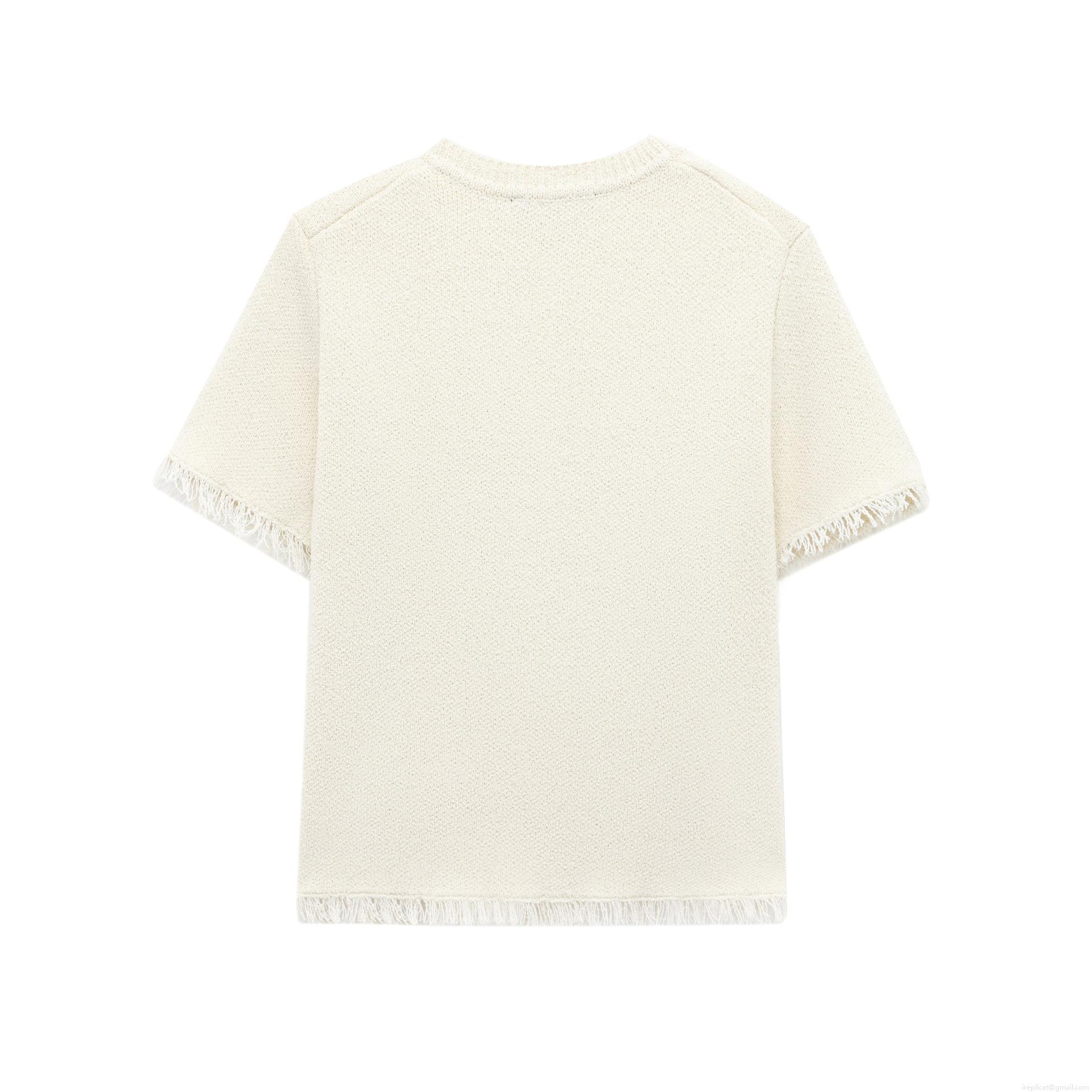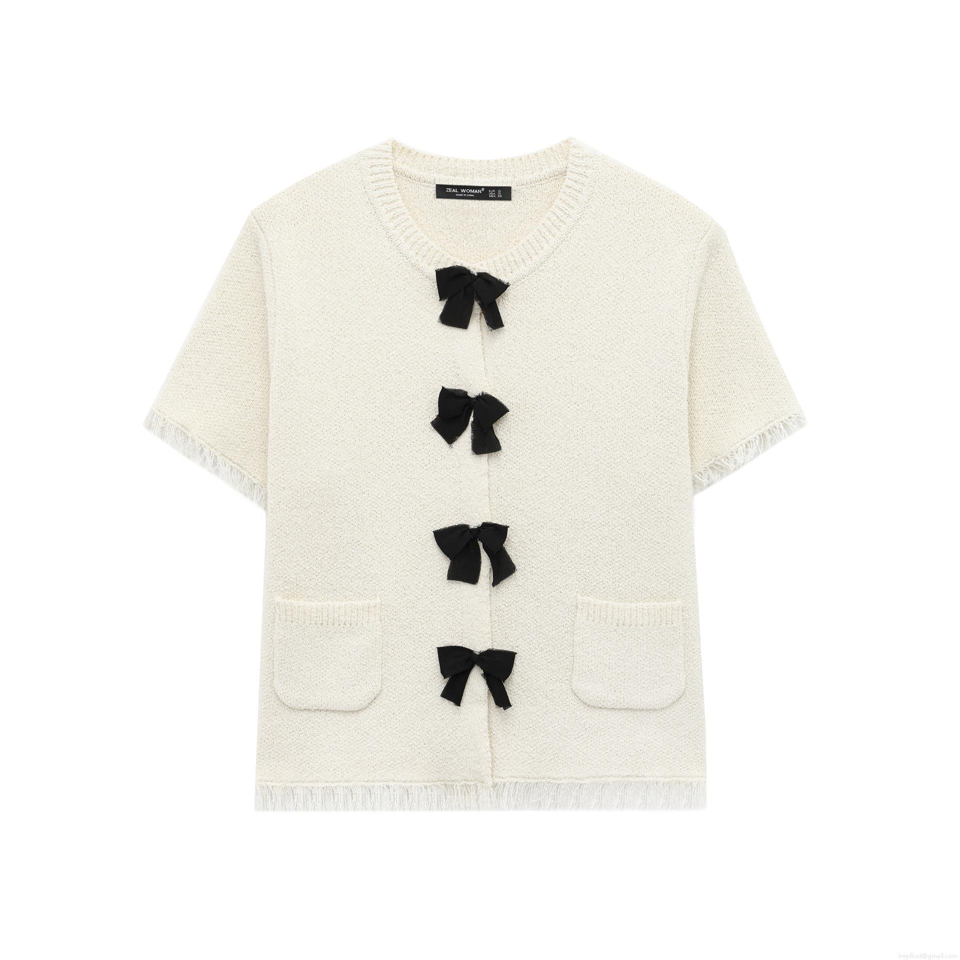 • Women Elegant Knit Two Piece Set Black Bow Button Short Sleeve Cardigan And Fringe Mini Skirt Tweed Style Outfit For Spring Office Party Lady
