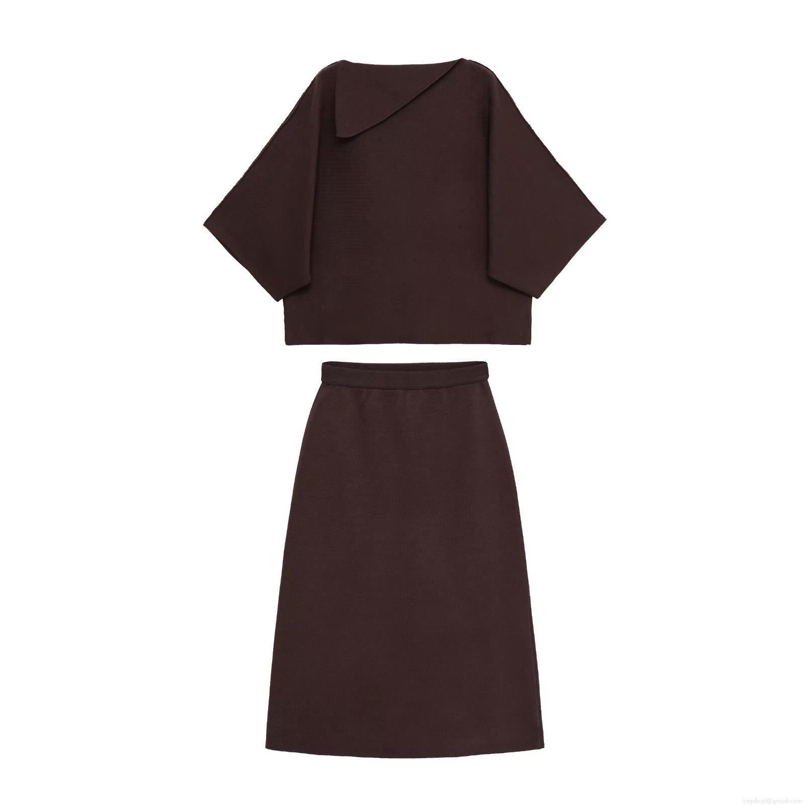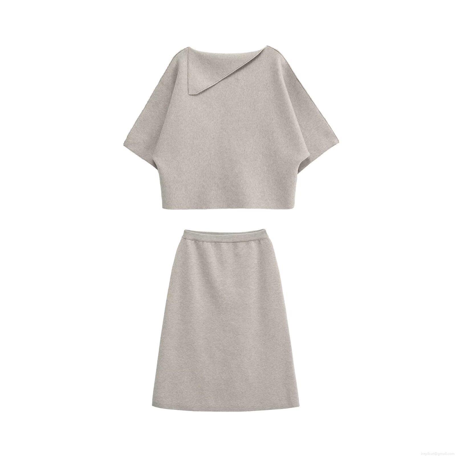 • Women Elegant Knit Two Piece Skirt Set Asymmetrical Neck Short Sleeve Top And Midi A-Line Skirt Solid Color Casual Office Commute Streetwear Outfits