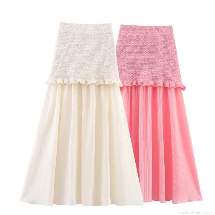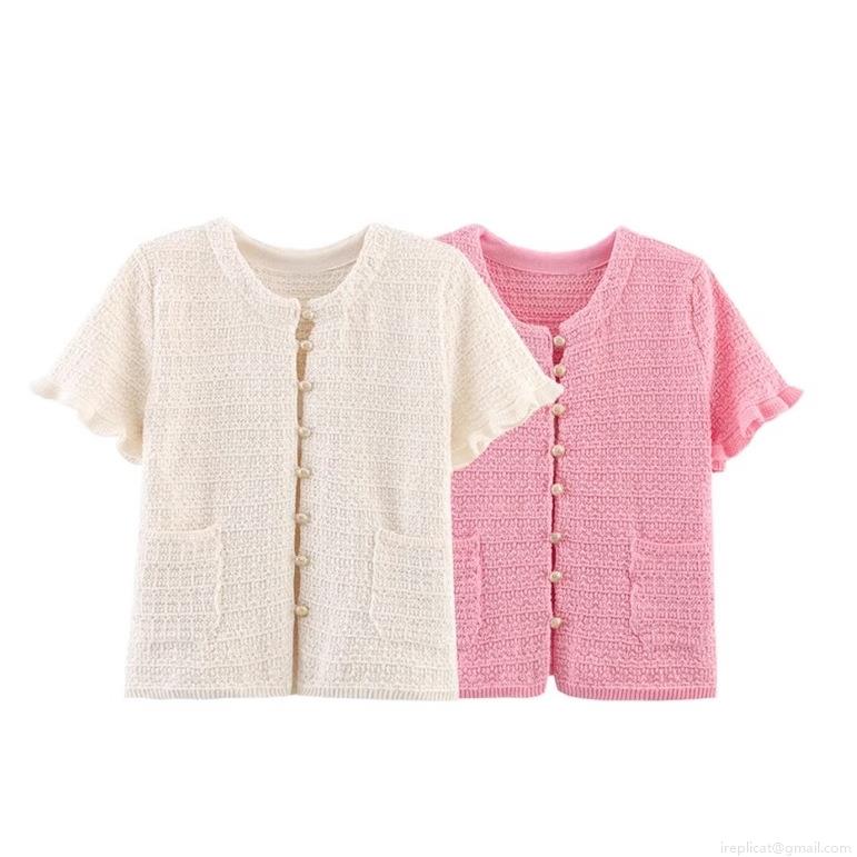 • Women Elegant Knitted Two Piece Skirt Set Short Sleeve Cardigan Top and Spliced Pleated Midi Skirt Sweet Tweed Style Summer Outfits