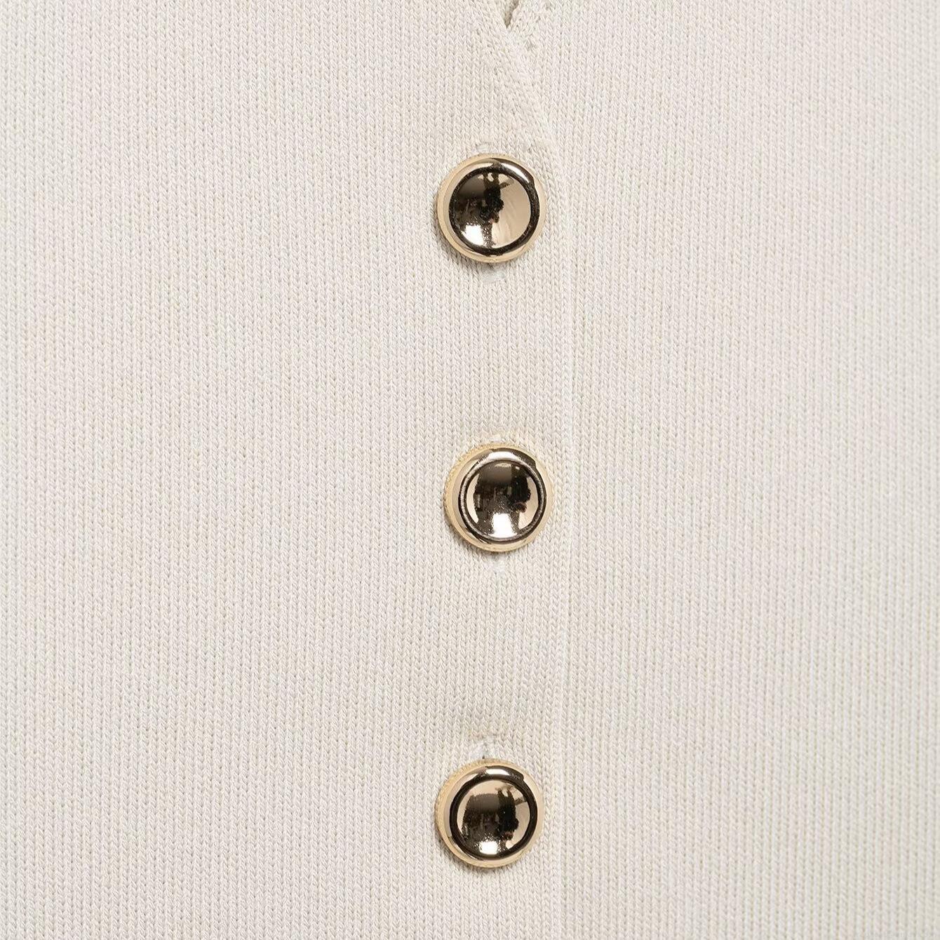 Solid Color, Splice, Pleats, Knitted Ribbed, Button Decoration