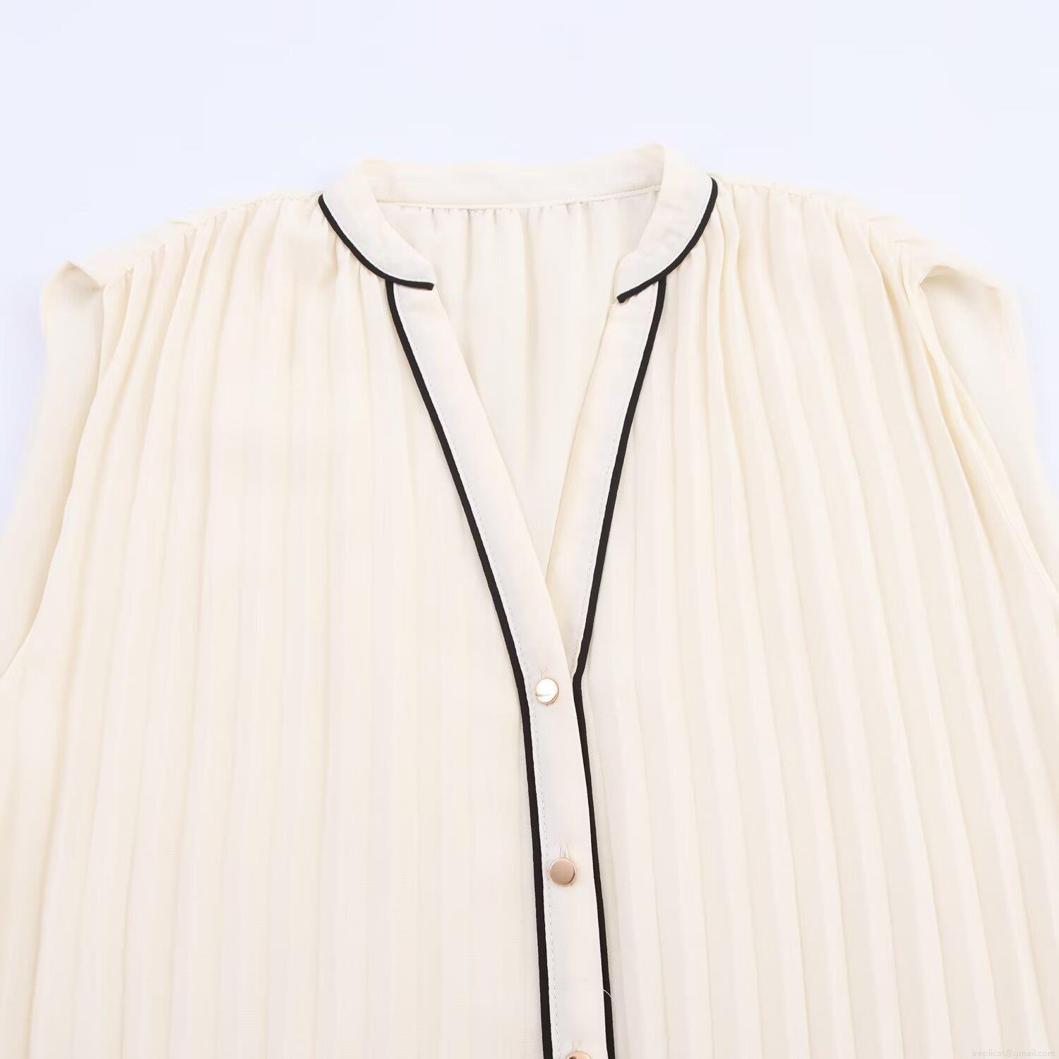 Pleats, V-neck, Sleeveless, Contrasting Color Piping