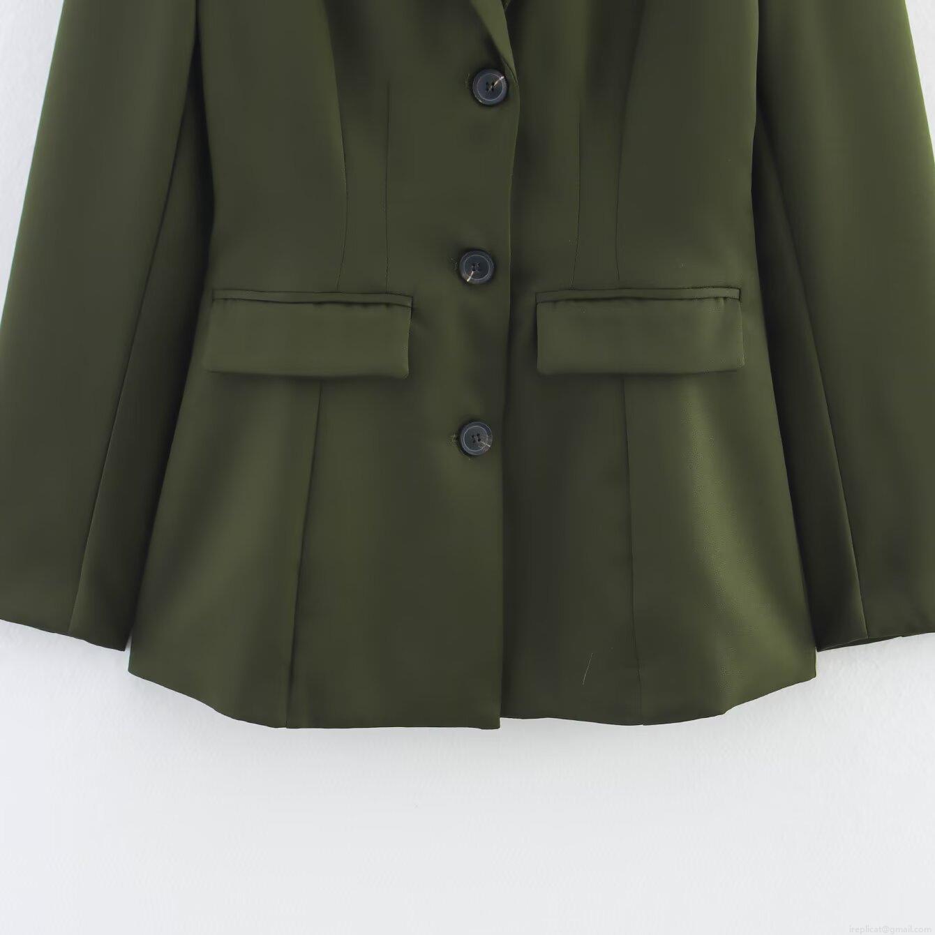 • Women Elegant Olive Green Suit Skirt Set Long Sleeve Padded Shoulder Slim Fit Two Piece Blazer And Mini Skirt Set For Commuter Party Fashion Ladies Outfit