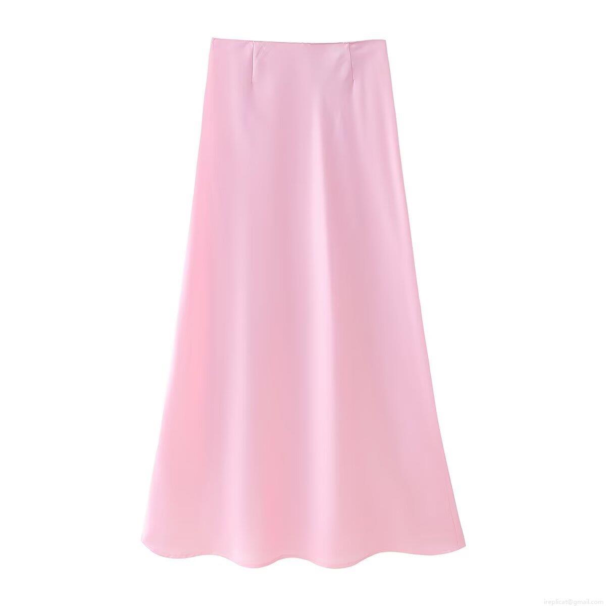 Solid Color, Double-breasted, Satin Finish, A-line Skirt