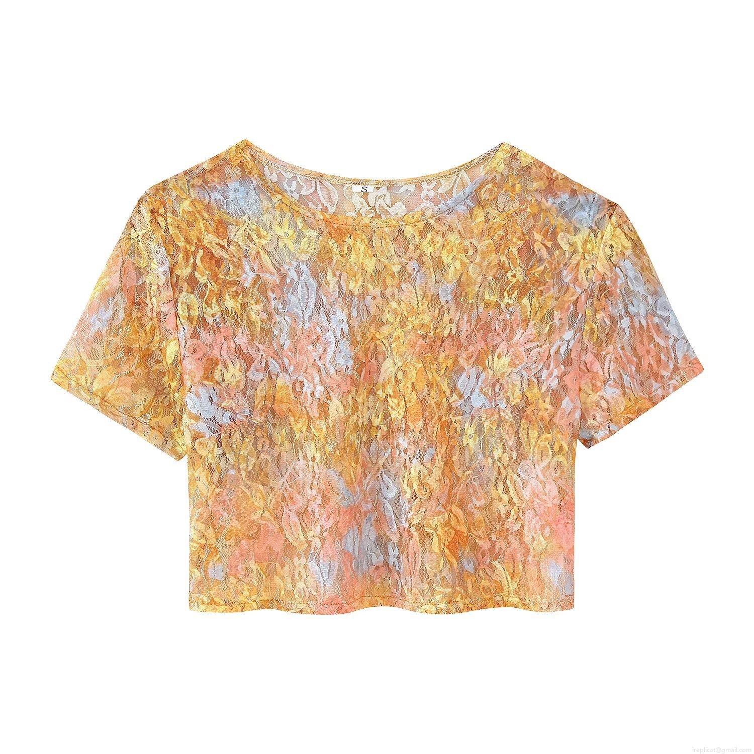 • Women Floral Lace Two Piece Skirt Set Short Sleeve Round Neck Crop Top And High Waist Bodycon Maxi Skirt Set Multicolor Summer Beach Vacation Outfits Streetwear For Women