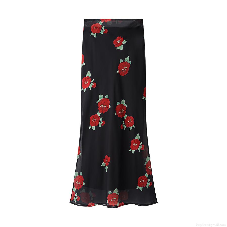 • Women Floral Print 2 Piece Outfits Set Rose Chiffon Mesh Ruffle Cami Crop Top And High Waist A-Line Maxi Skirt Elegant Summer Beach Party Streetwear Set