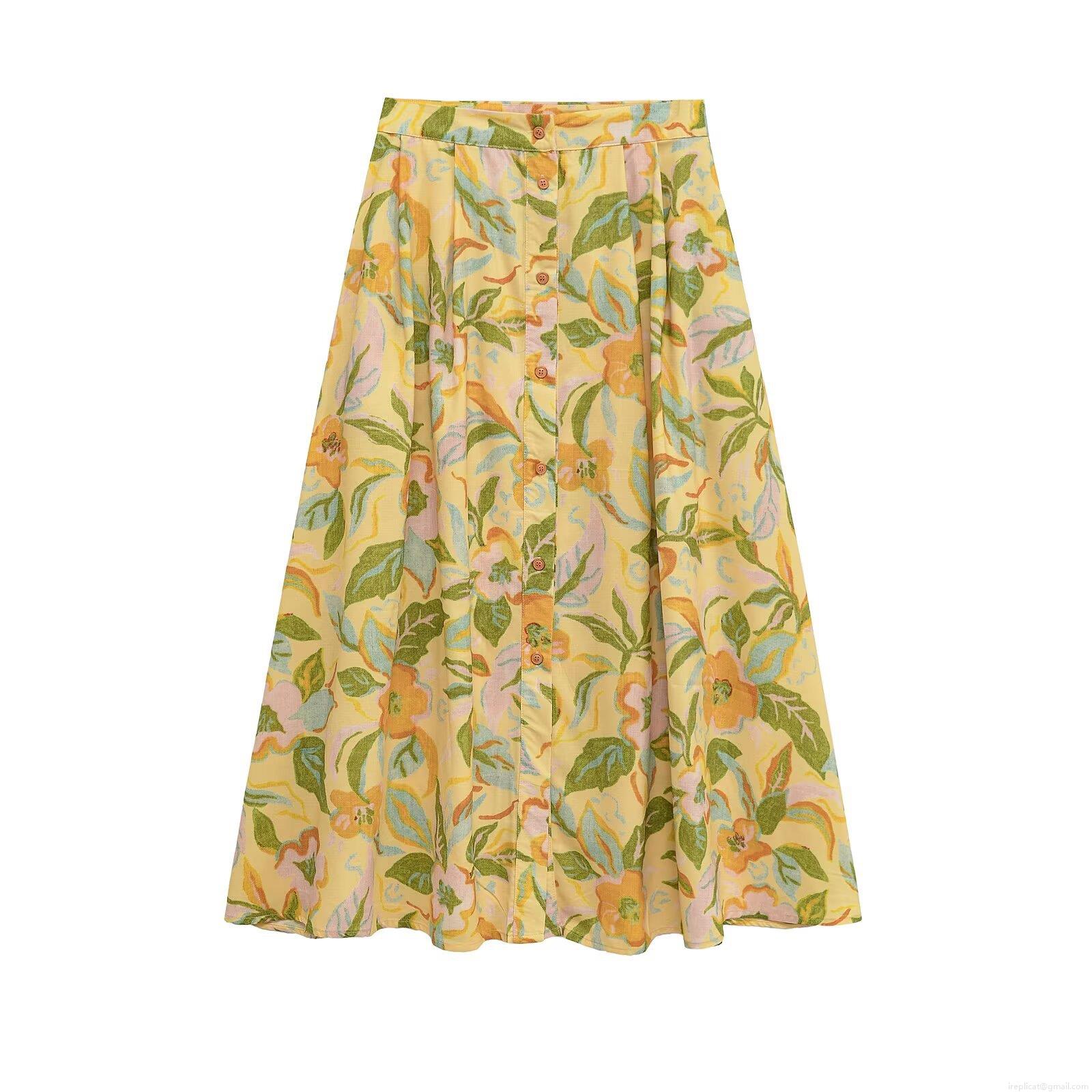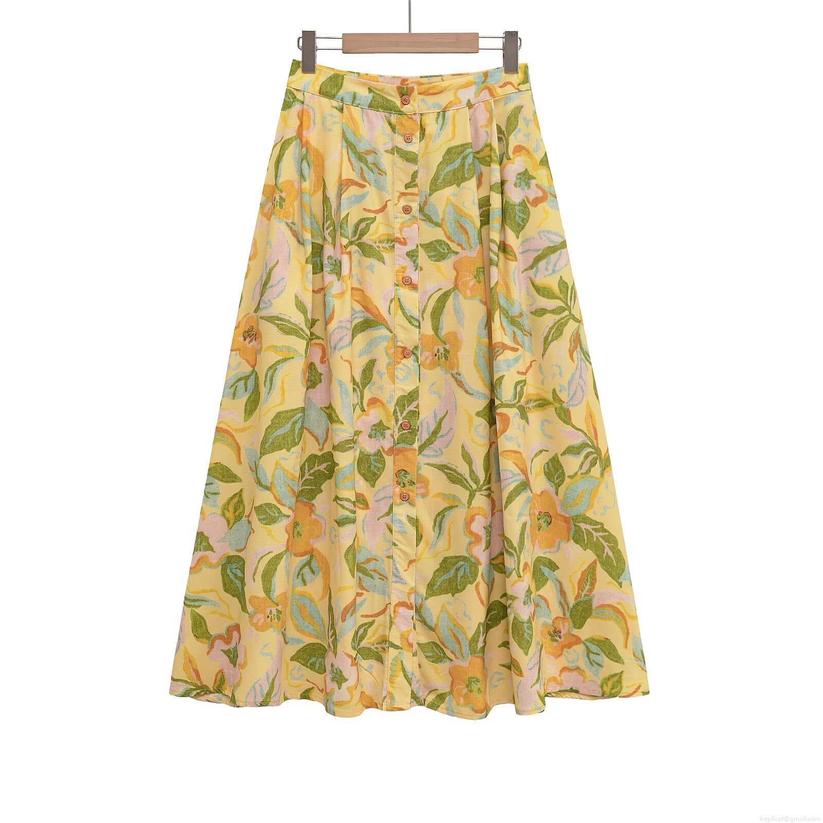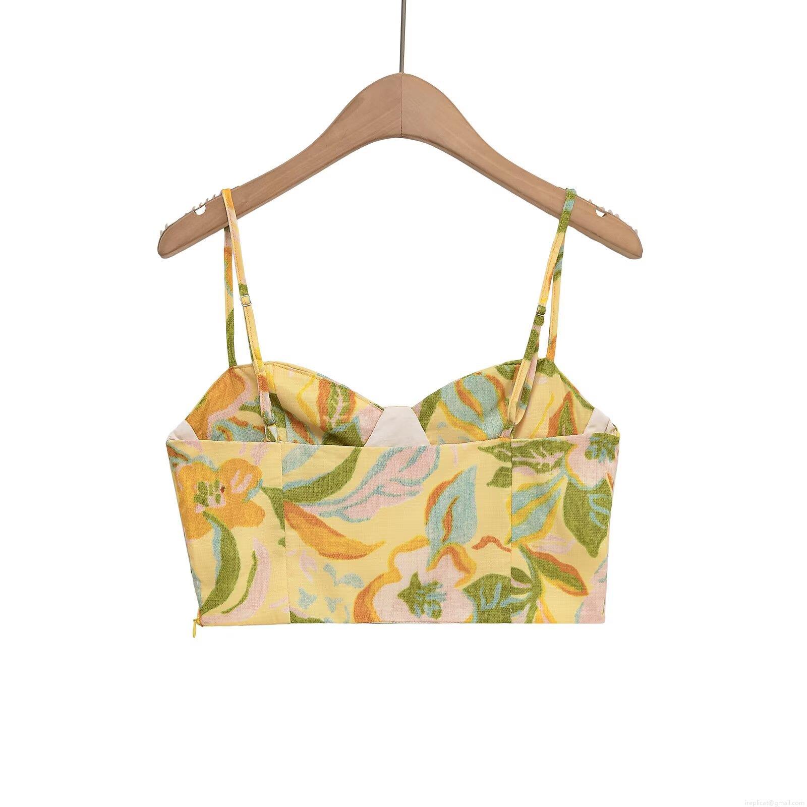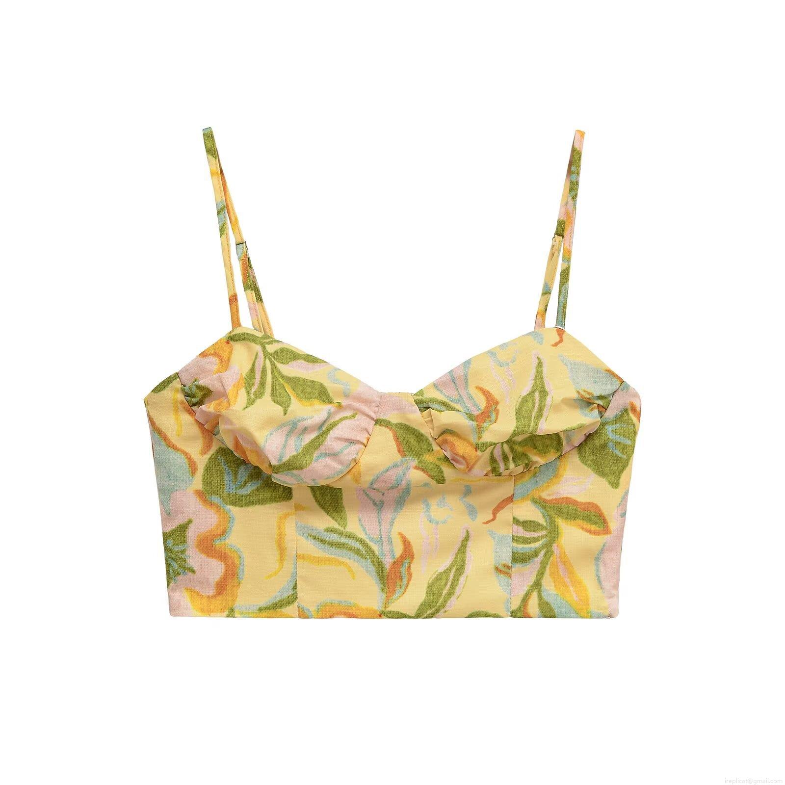 • Women Floral Print 2 Piece Set Cotton Blend Ruched Cami Crop Top And High Waist A-Line Midi Skirt Summer Vacation Casual Retro Outfits