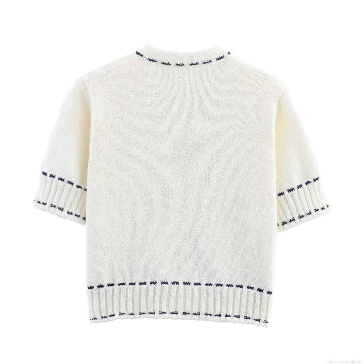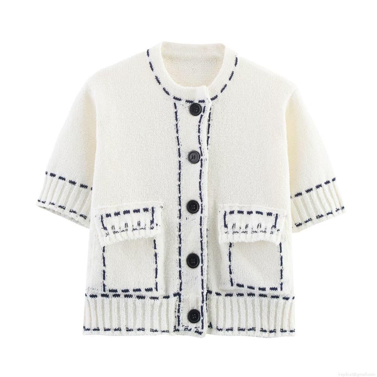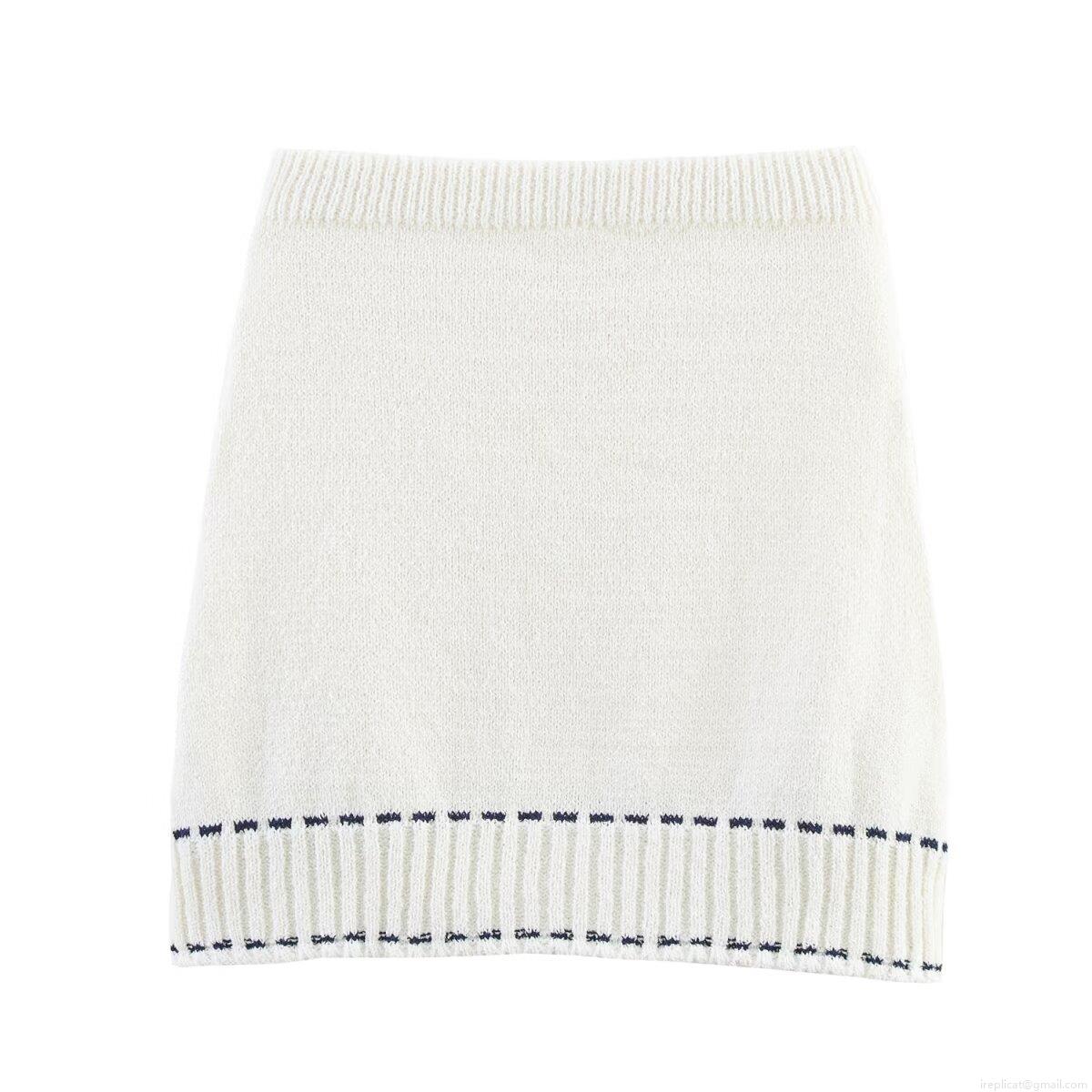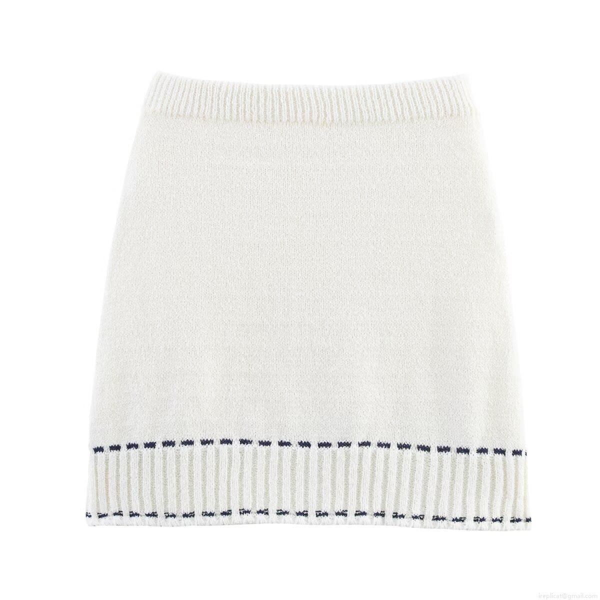• Women Knitted Skirt Set Contrast Stitching Short Sleeve Cardigan And Mini Skirt Cotton Blend Knit Two Piece Outfit Casual Elegant Short Coat Office Lady Streetwear