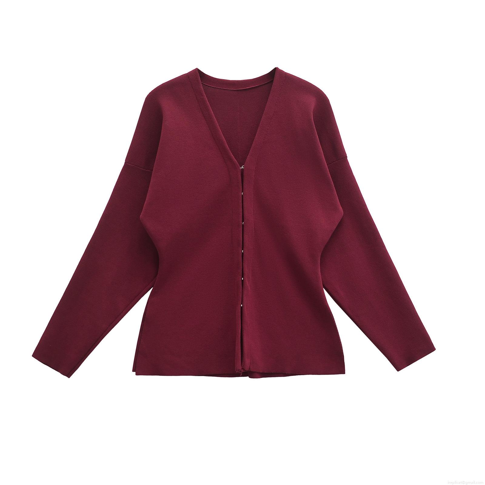 Solid Color, V-neck, Metal Hooks, Knit Rib, A-line Cut