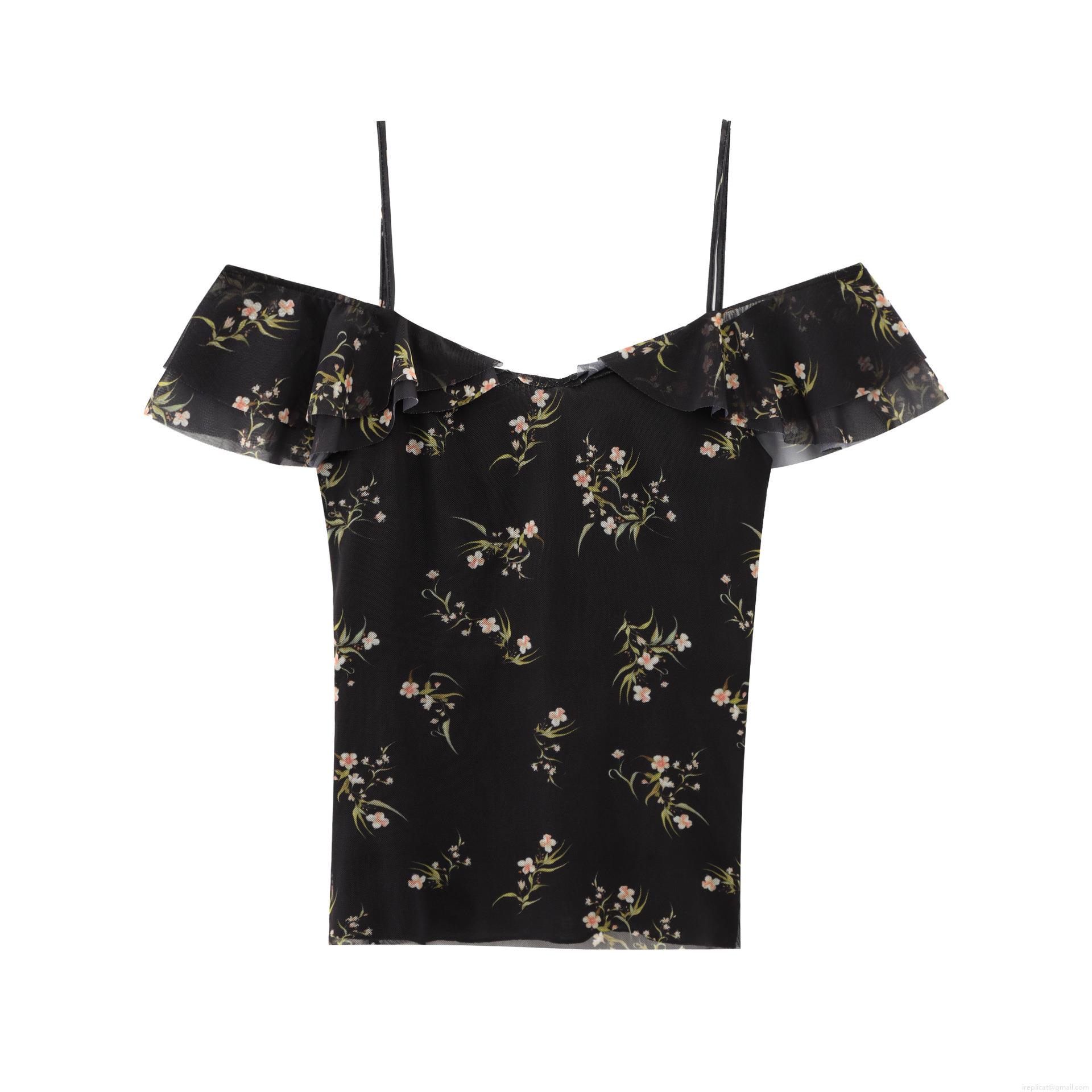 Floral Pattern, Ruffles, Plants And Flowers, Printing, Mesh, Off-shoulder, Off-the-shoulder Neckline, Fishtail