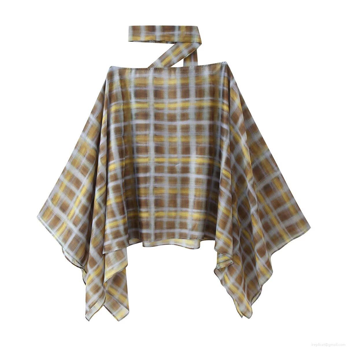 • Women Plaid 2 Piece Outfits Scarf Tie Neck Batwing Sleeve Poncho Top and Irregular Hem Skirt Set Autumn Streetwear Chiffon Like Fashion Clothing