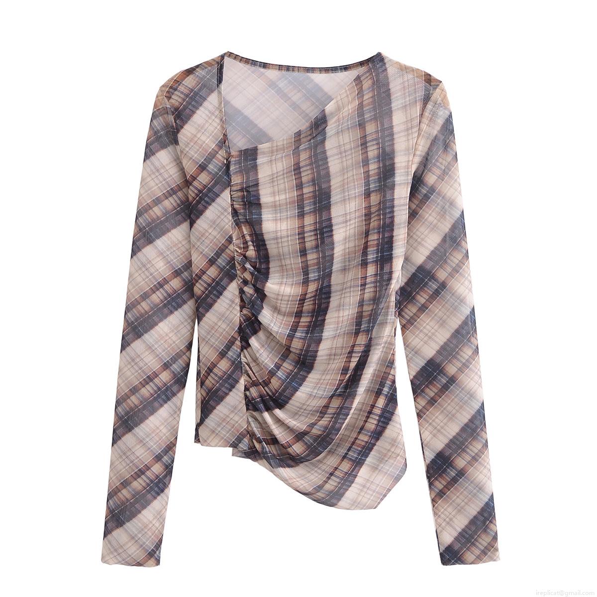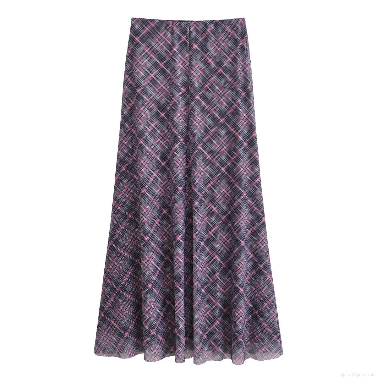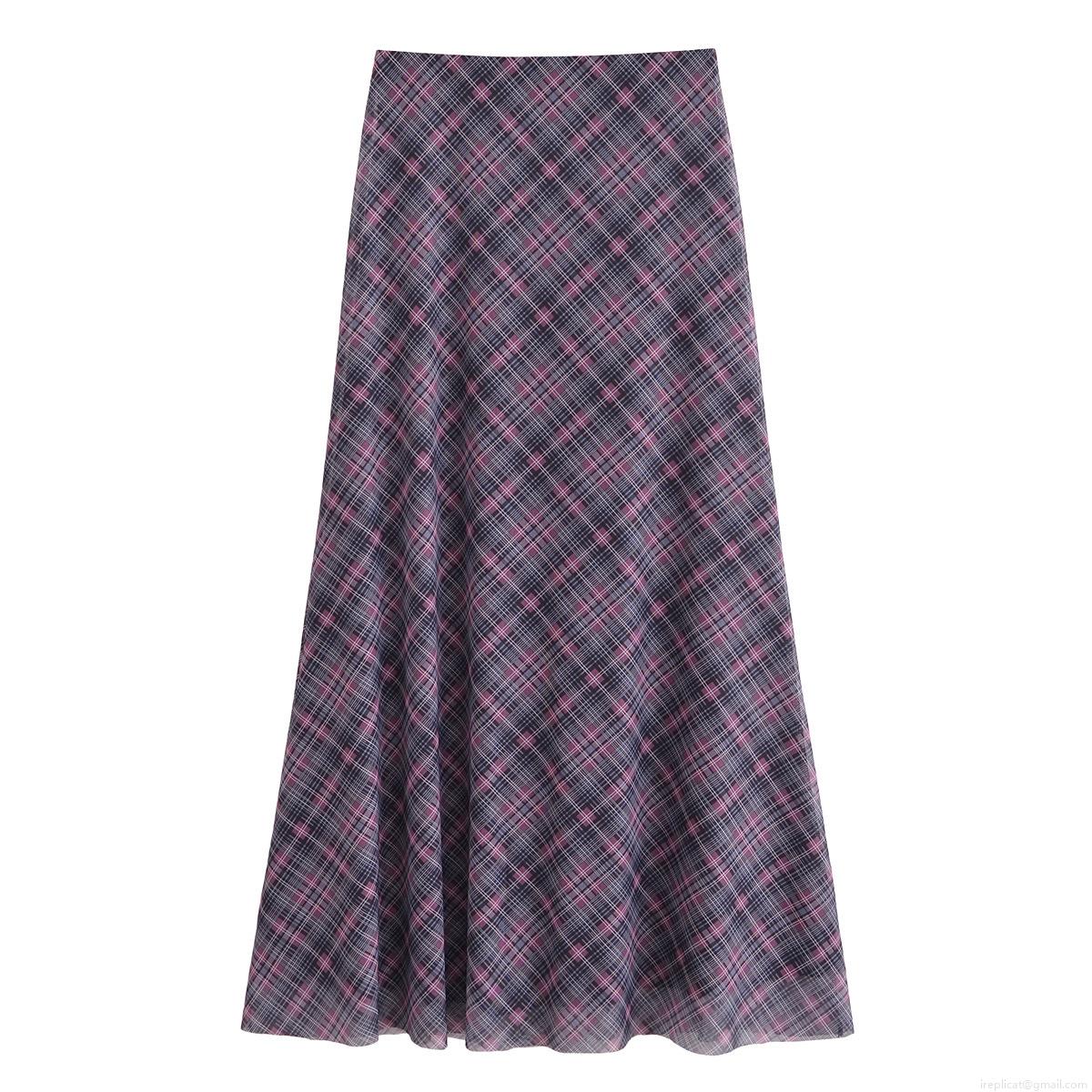Classic Plaid, Checkered Pattern, Mesh See-through, Irregular Hem, Pleats