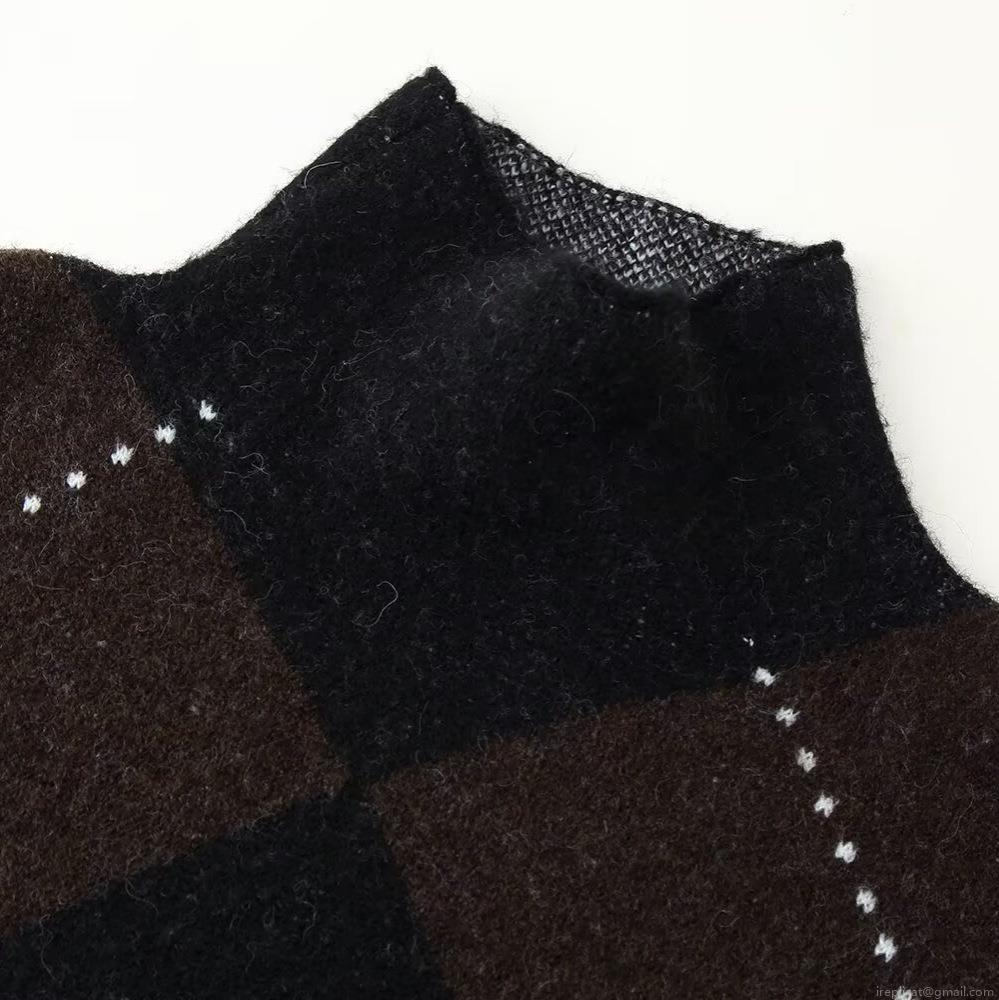 • Women Retro Argyle Knit Two Piece Set High Neck Long Sleeve Sweater And Mini Skirt Casual Winter Outfit Polyester Spandex Warm Clothing