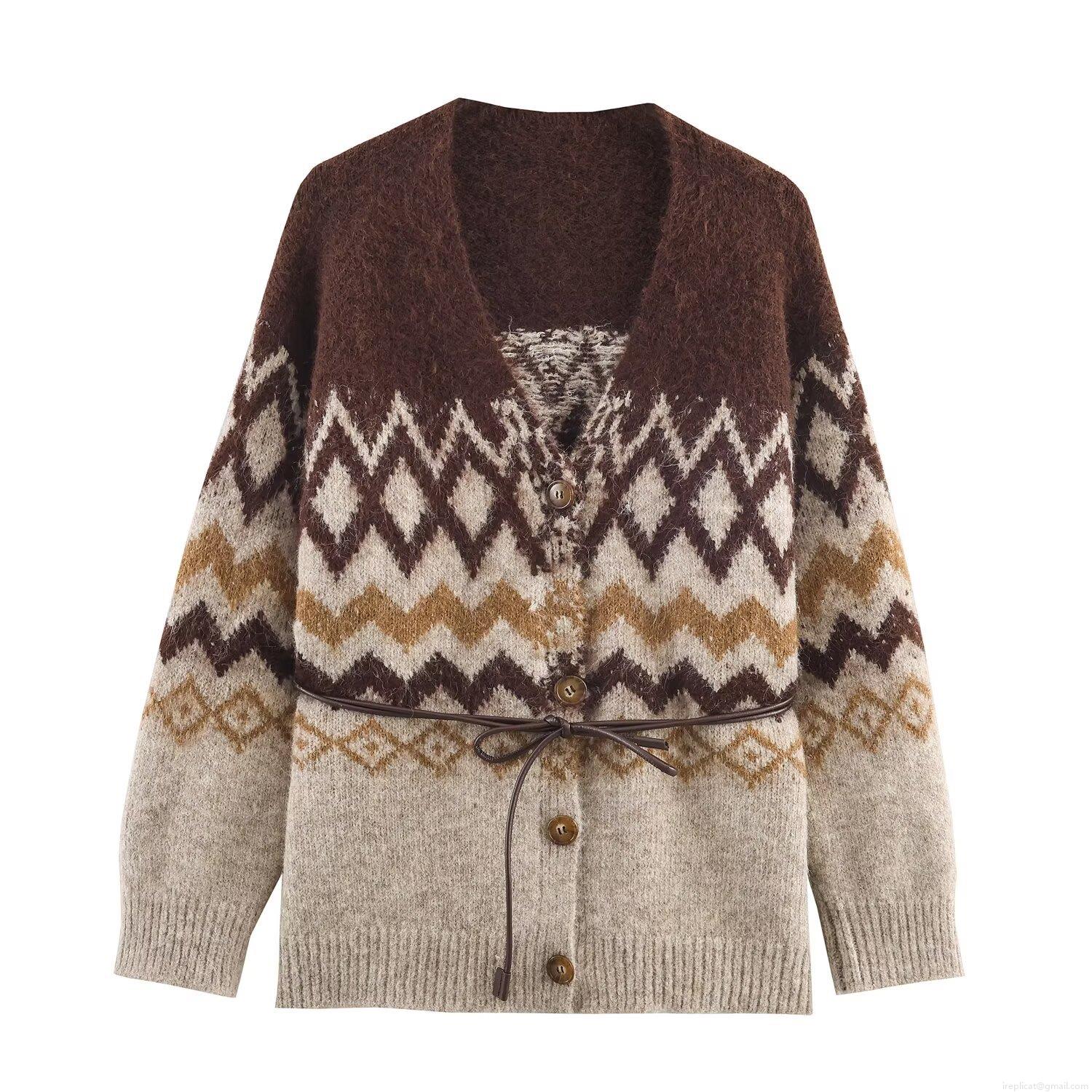 • Women Retro Argyle Knitted Two Piece Set V Neck Button Cardigan With Belt And Straight Skirt Casual Winter Outfits